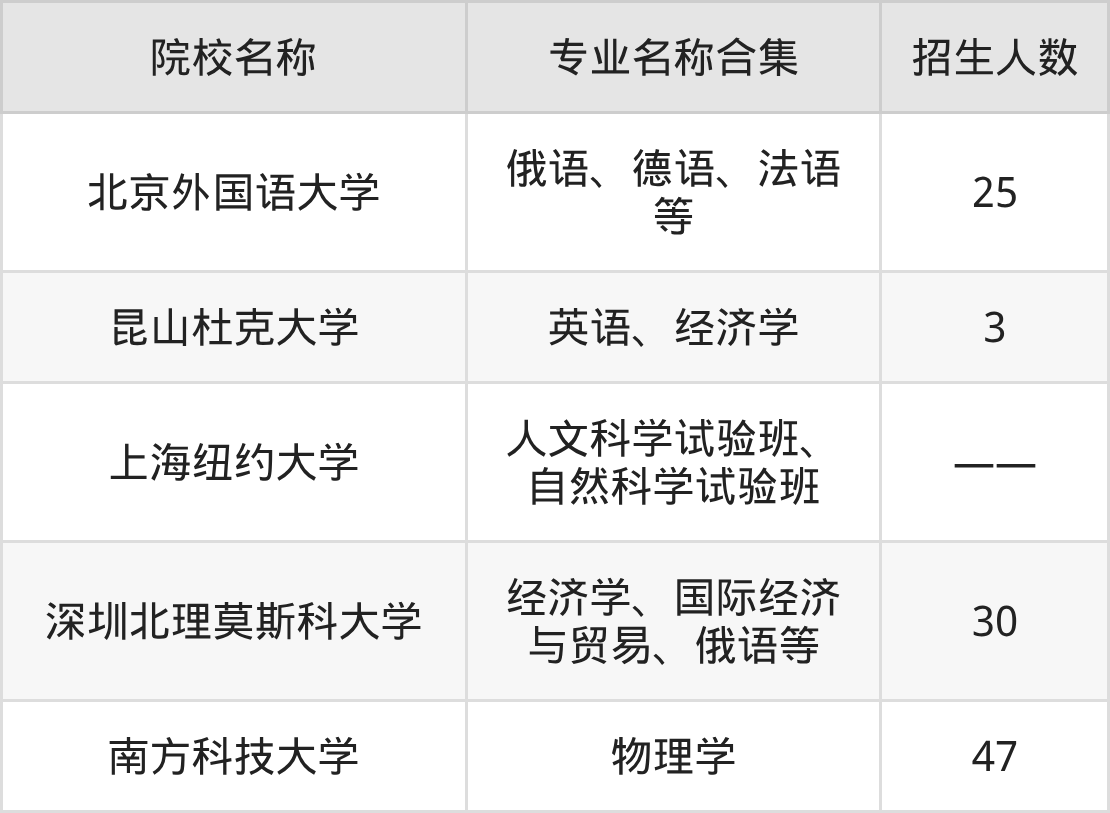 其中,南方科技大学以47人招生规模居首,深圳北理莫斯科大学30人紧随其后,北京外国语大学招25人。