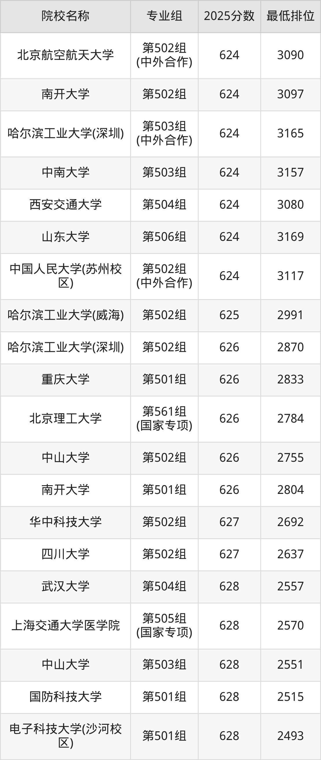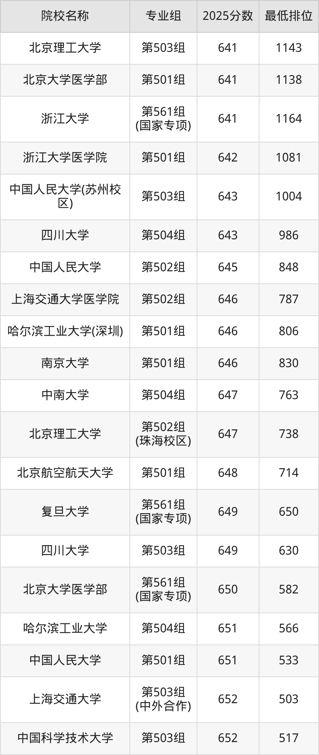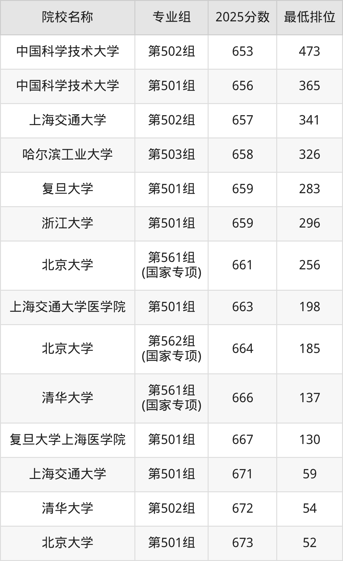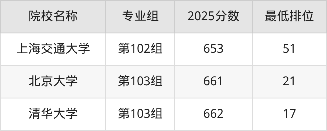 第一梯队(670分+):上海交通大学(第501组是671分)、清华大学(第502组是672分)、北京大学(第501组是673分)