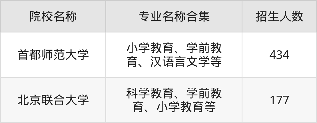 其中,首都师范大学以434人招生规模居首,北京联合大学177人紧随其后,构成招生第一梯队。