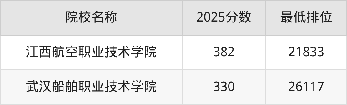 第一梯队(380分+):江西航空职业技术学院(382分)
