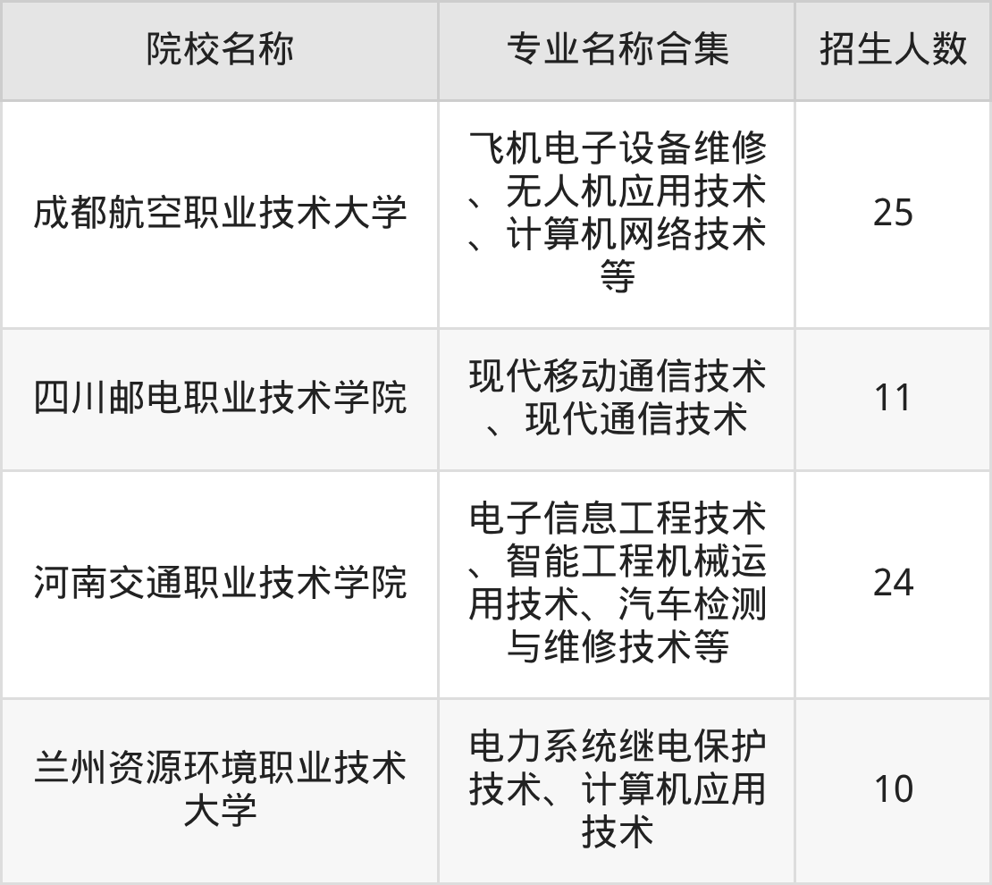 四川:成都航空职业技术大学、四川邮电职业技术学院