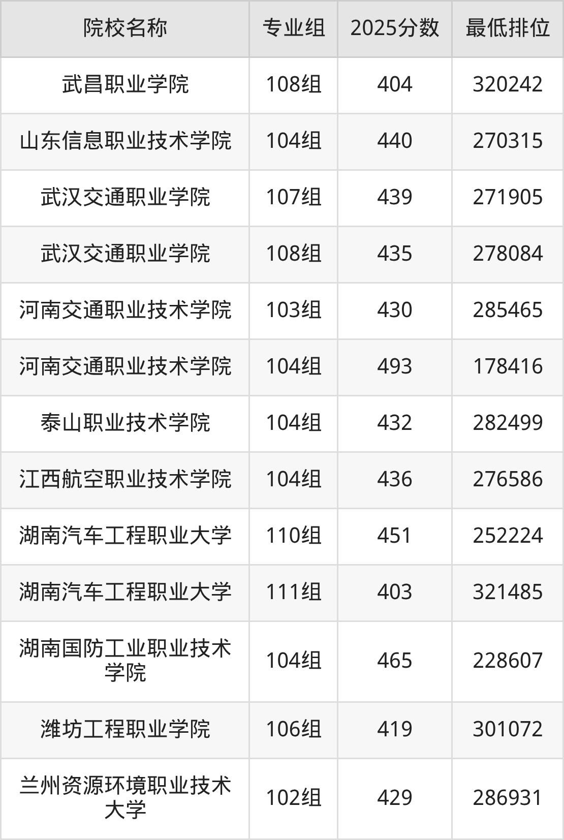 第三梯队(410分及以下):武昌职业学院(108组是404分)、湖南汽车工程职业大学(111组是403分)