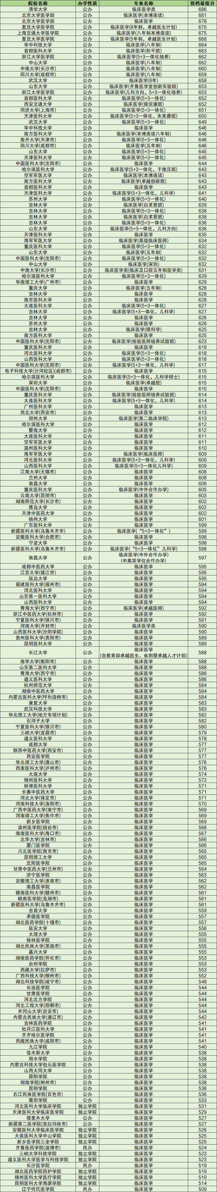 可以发现的是多数大学的临床医学专业分数线都位于550分及以上,另外临床医学分为普通本科、八年制以及5+3一体化,这是三种不同的专业,就读时间以及培养方式均不相同,录取分数线自然也不一样。
