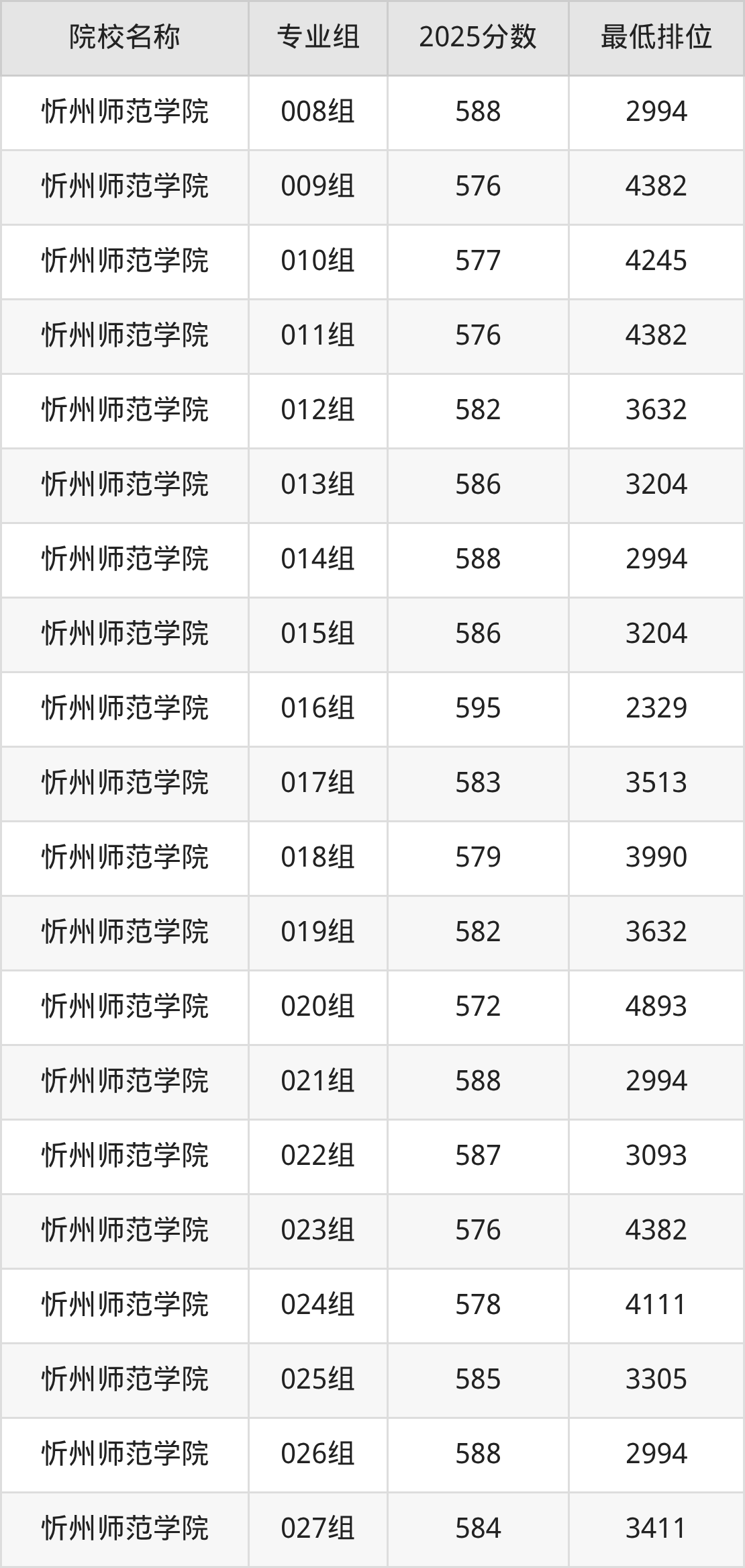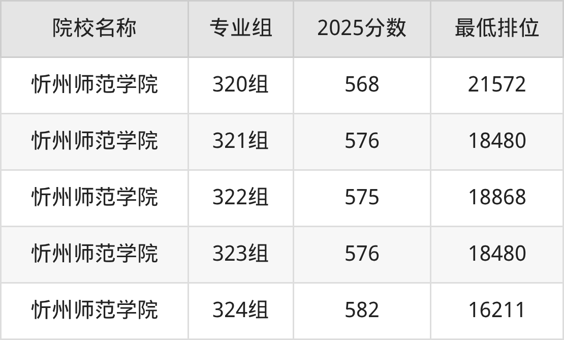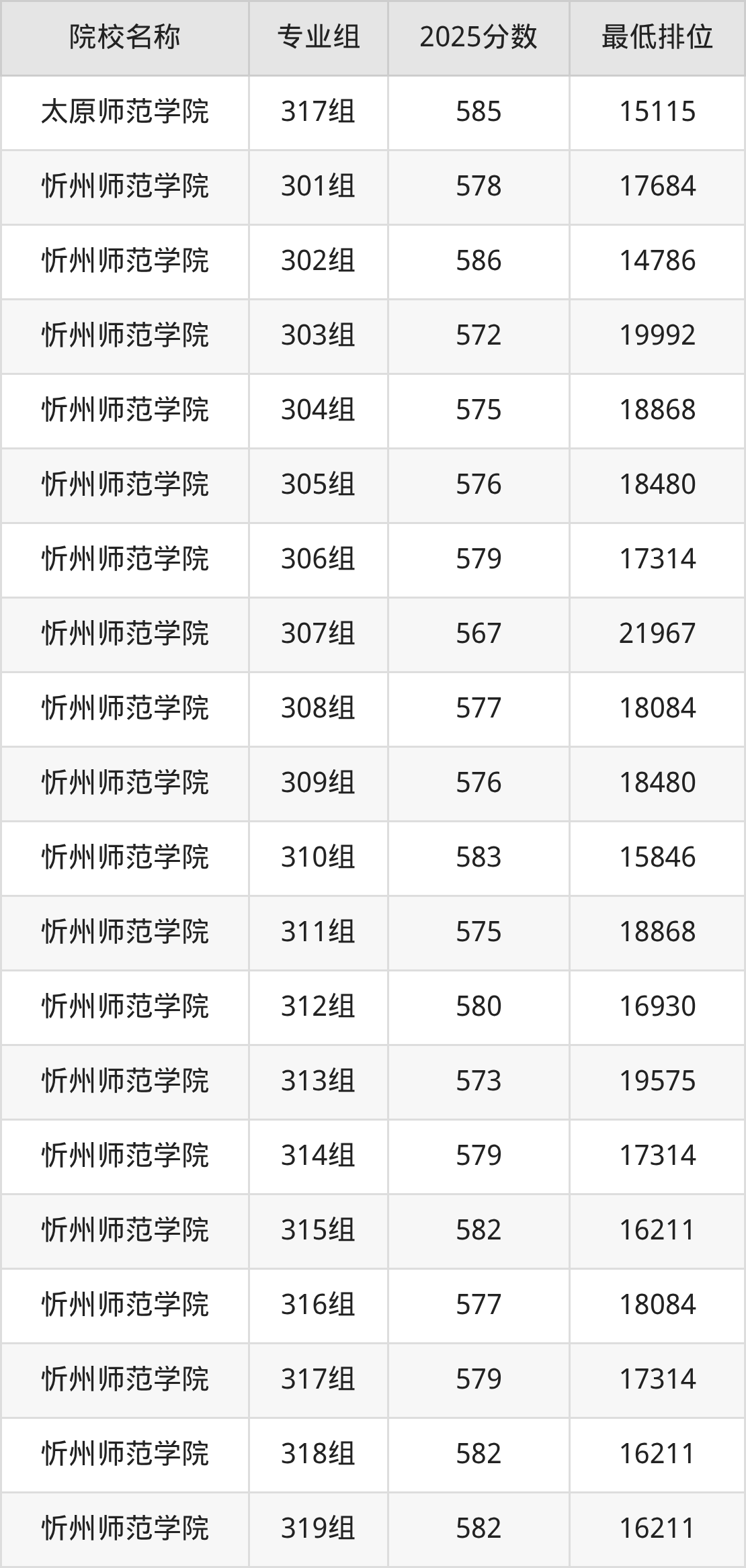 第三梯队(570分及以下):太原师范学院(309组是569分)、忻州师范学院(307组是567分)、忻州师范学院(320组是568分)