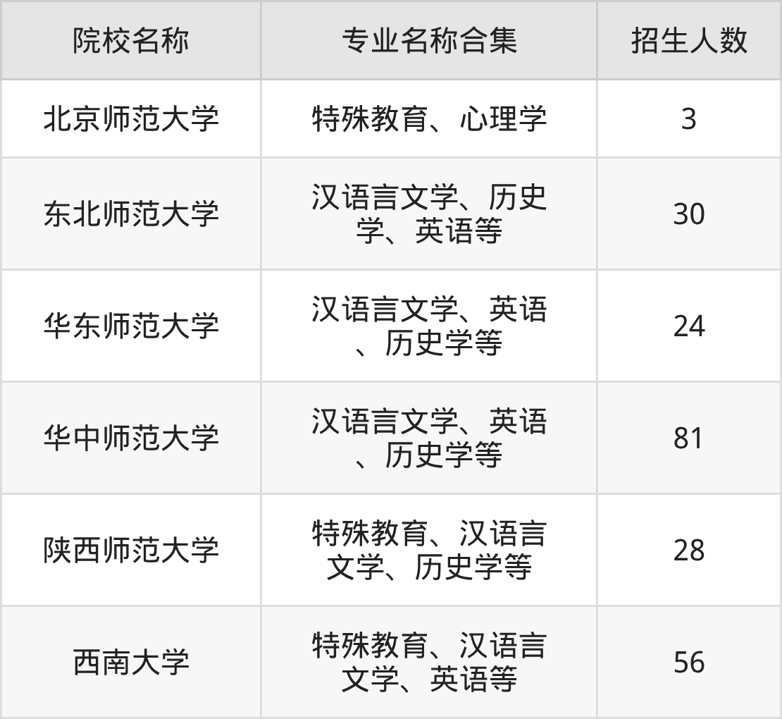 其中,华中师范大学以81人招生规模居首,西南大学56人紧随其后,东北师范大学招30人,构成招生第一梯队。