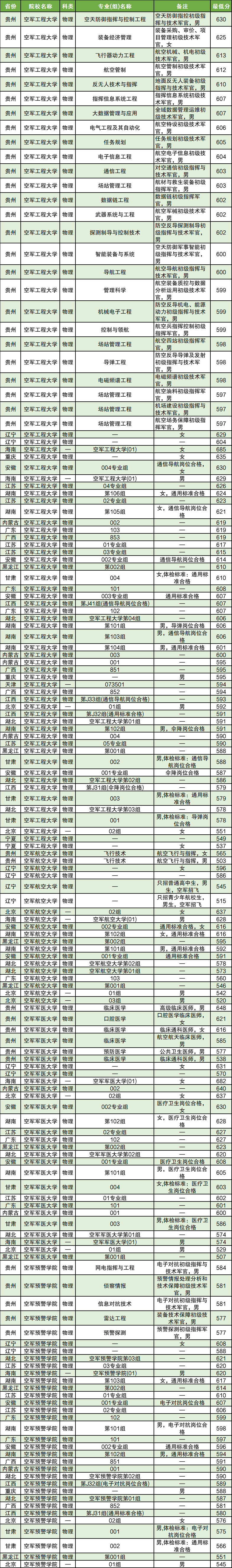 下面是空军军校录取分数线一览表(需滑动查阅):