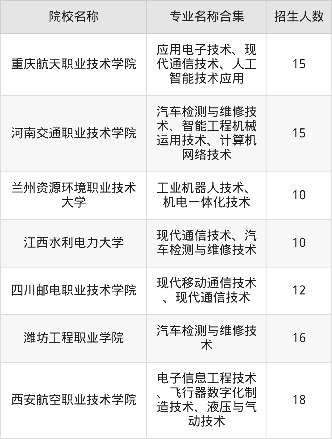 四川:成都航空职业技术大学、四川邮电职业技术学院