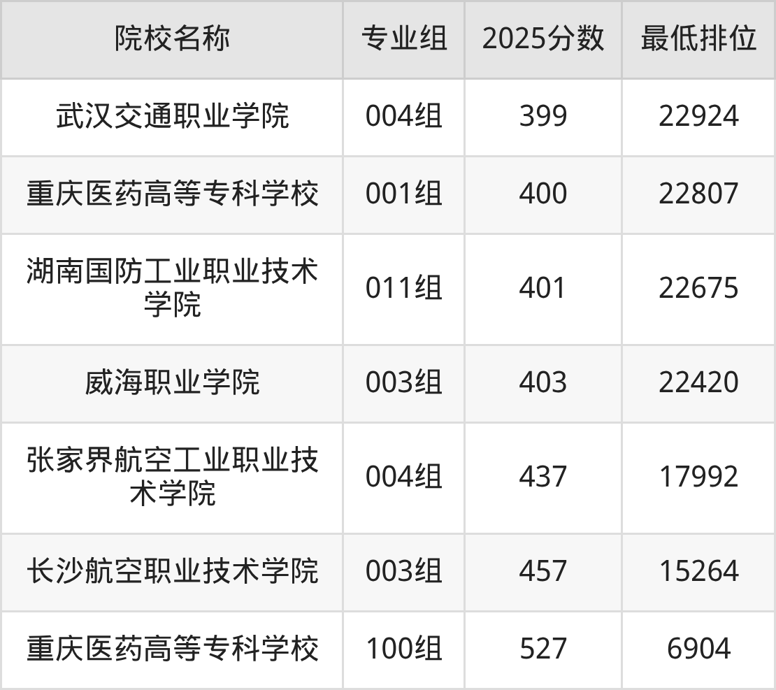第一梯队(530分+):重庆医药高等专科学校(200组是532分)