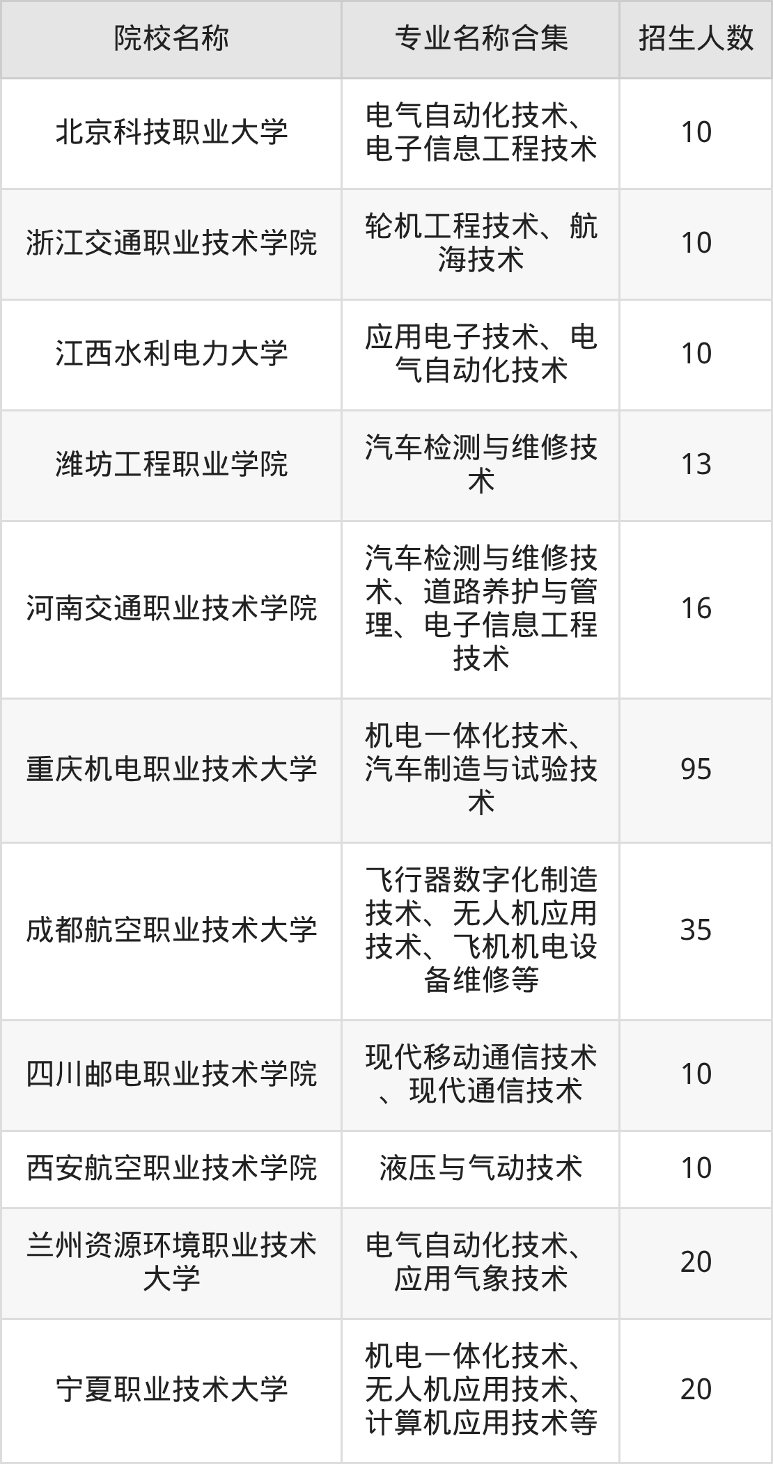 重庆:重庆航天职业技术学院、重庆医药高等专科学校、重庆交通职业学院、重庆机电职业技术大学