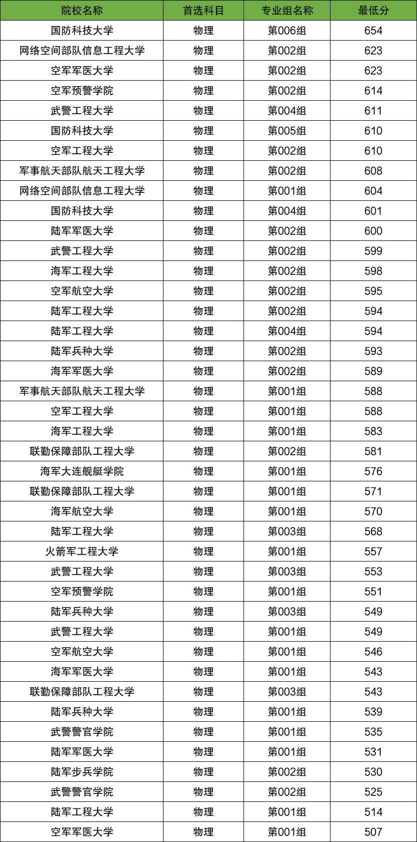 海军工程大学:物理类第001组最低583分、第002组最低598分。