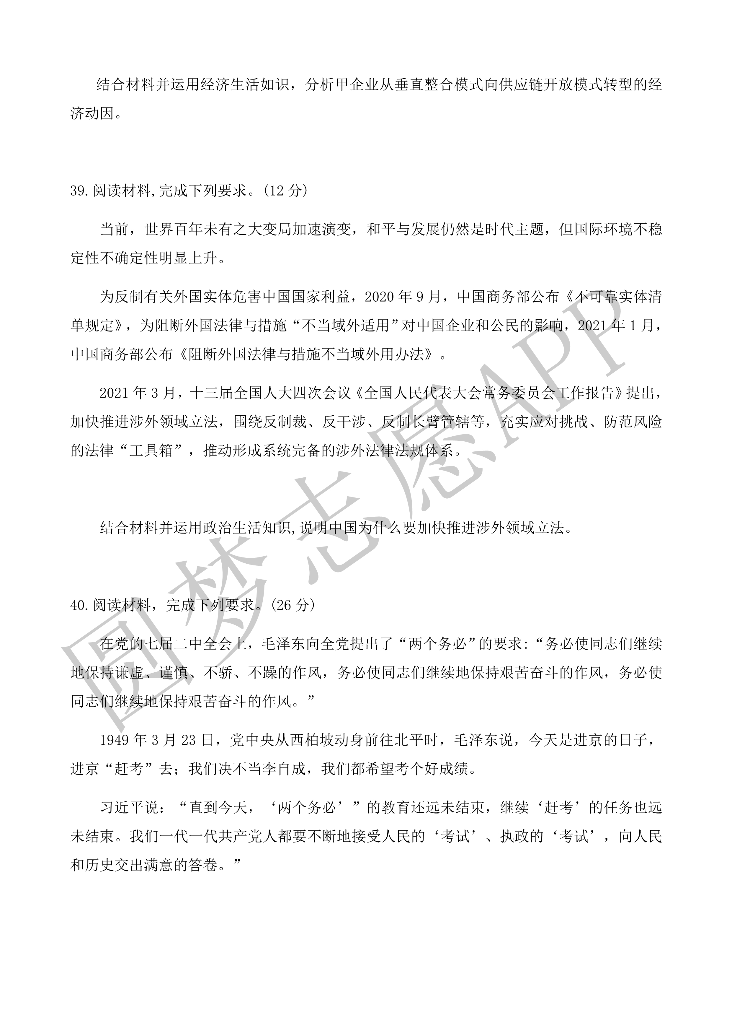一、2021年高考文综试卷全国乙卷及答案(2021年高考文综卷子全国乙卷答案解析)
