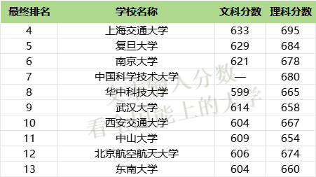 下表为2024年软科中国大学排名中,其余前十名大学排名及分数线。