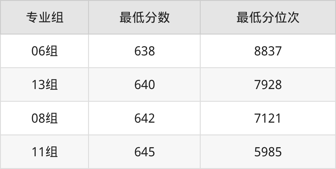 (25)华南理工大学:04组录取分是644、位次是6362,03组录取分是648、位次是4973,06组录取分是649、位次是4675,05组录取分是652、位次是3805