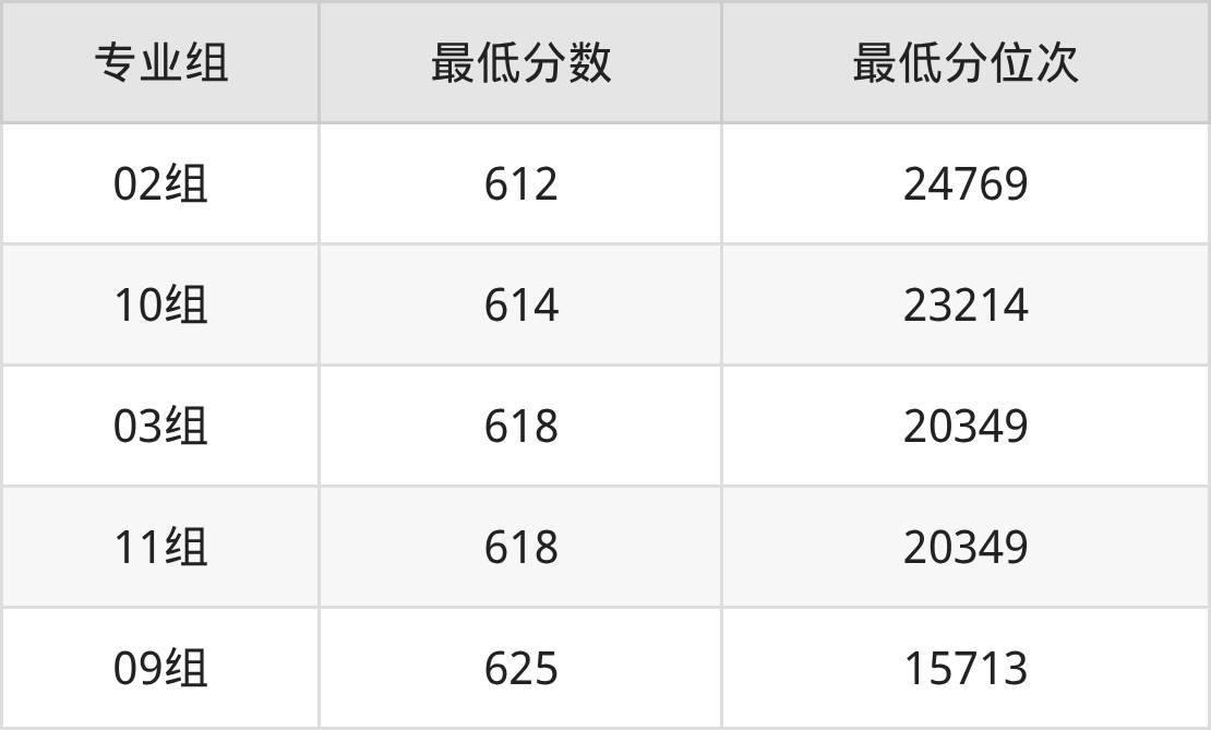 (24)武汉大学:08组(中外合作)录取分是625、位次是15713,09组录取分是640、位次是7928,07组录取分是647、位次是5310,05组录取分是651、位次是4082,06组录取分是653、位次是3556