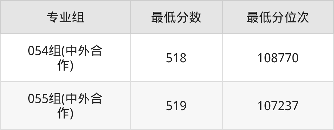 (44)西北大学:005组(中外合作)录取分是583、位次是38724,051组(中外合作)录取分是605、位次是23786
