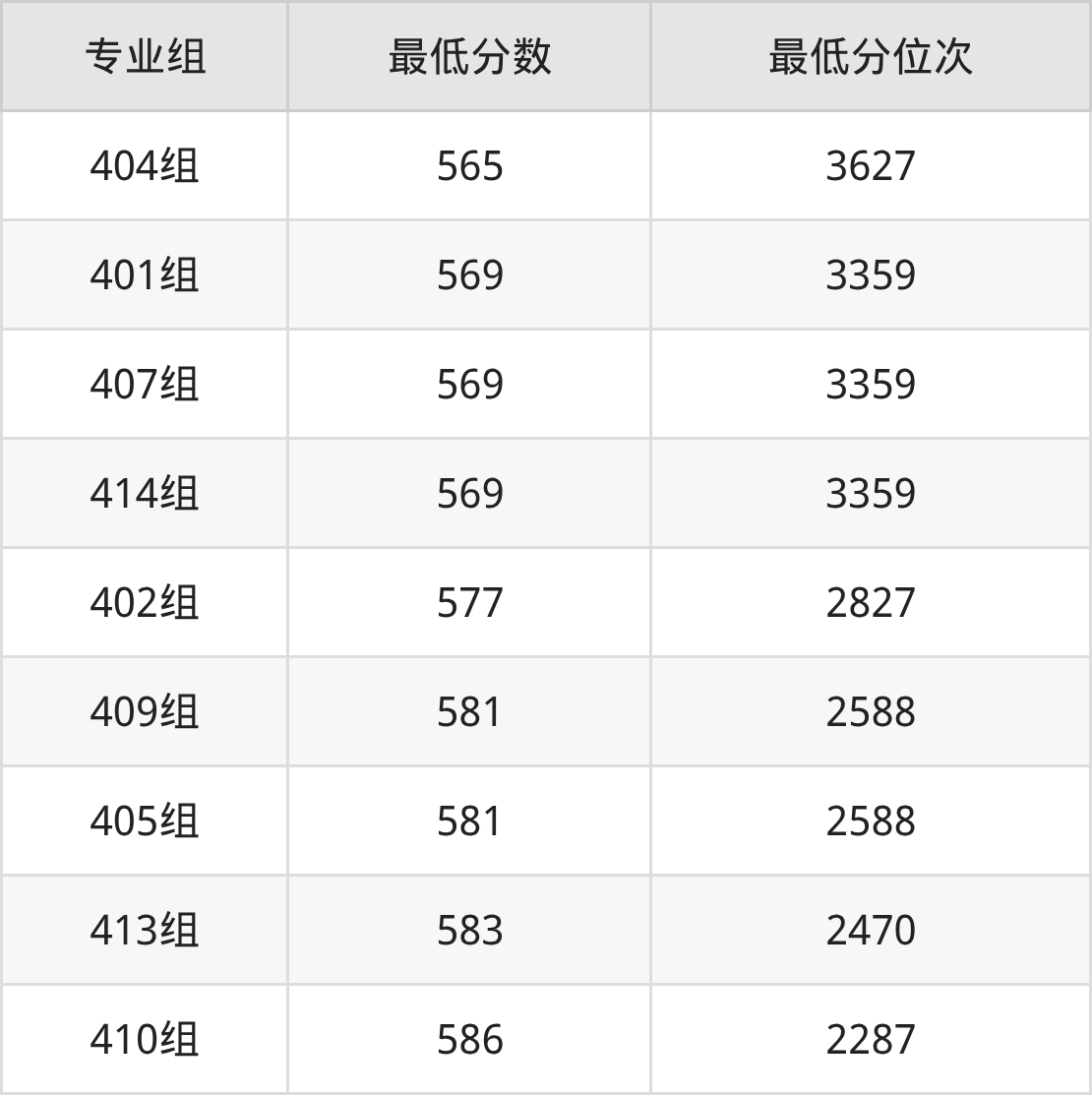 (7)内蒙古民族大学:406组录取分是556、位次是4355,403组录取分是560、位次是4018,408组录取分是561、位次是3938,412组录取分是562、位次是3855,411组录取分是563、位次是3777