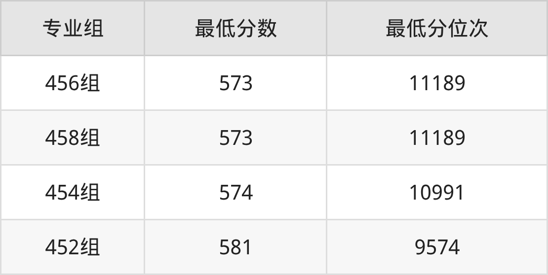 (8)内蒙古民族大学:455组录取分是560、位次是14036,457组录取分是562、位次是13604,459组录取分是563、位次是13388,451组录取分是568、位次是12270,453组录取分是571、位次是11607