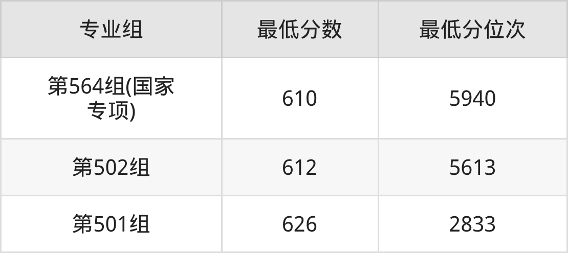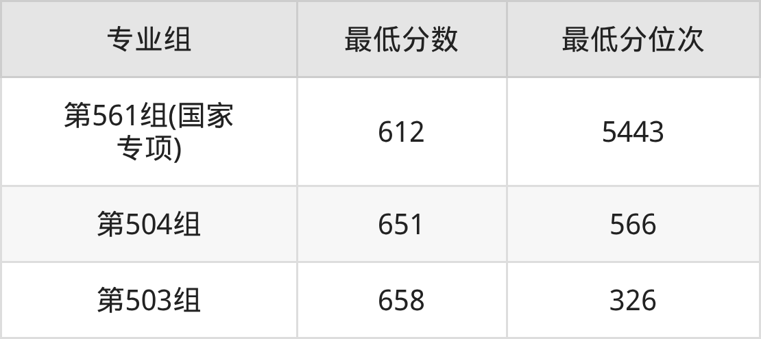 (6)复旦大学:第561组(国家专项)录取分是649、位次是650,第501组录取分是659、位次是283