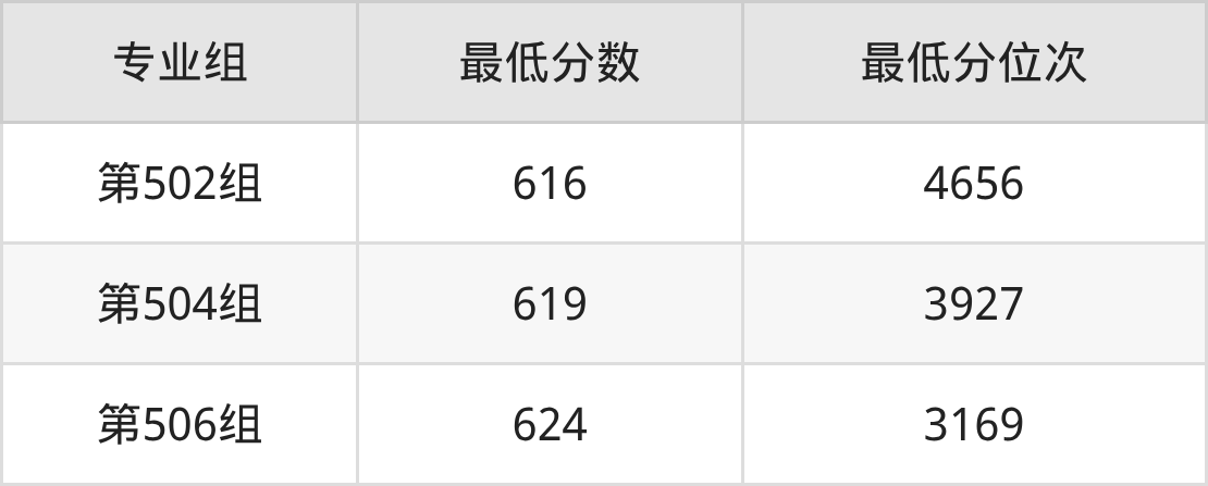 (9)中国科学技术大学:第561组(国家专项)录取分是640、位次是1231,第503组录取分是652、位次是517,第502组录取分是653、位次是473,第501组录取分是656、位次是365
