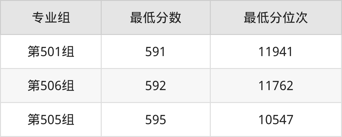 (14)北京理工大学:第501组(中外合作)录取分是597、位次是9975,第504组(中外合作)录取分是614、位次是4995,第561组(国家专项)录取分是626、位次是2784,第503组录取分是641、位次是1143,第502组(珠海校区)录取分是647、位次是738