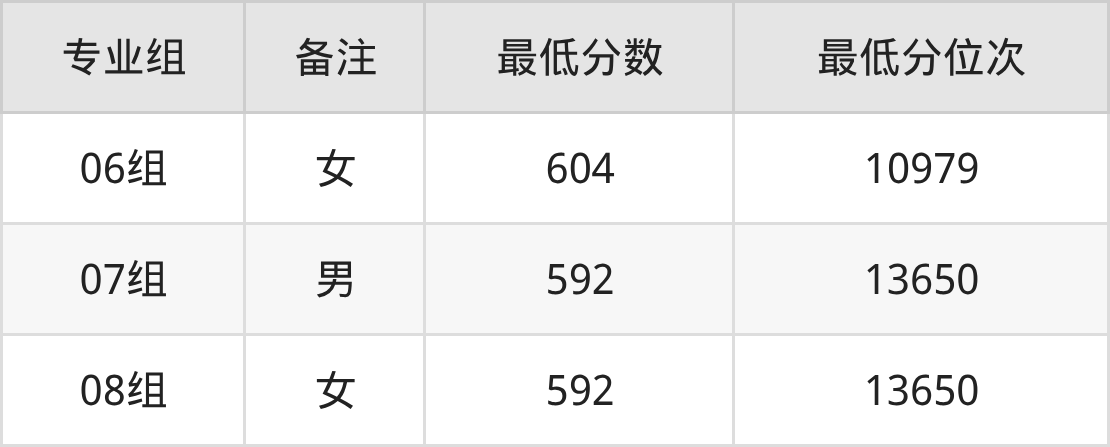 (2)国际关系学院:01组录取分是596、位次是12777,02组录取分是608、位次是10111,03组录取分是613、位次是9134,04组录取分是610、位次是9714,05组录取分是608、位次是10111