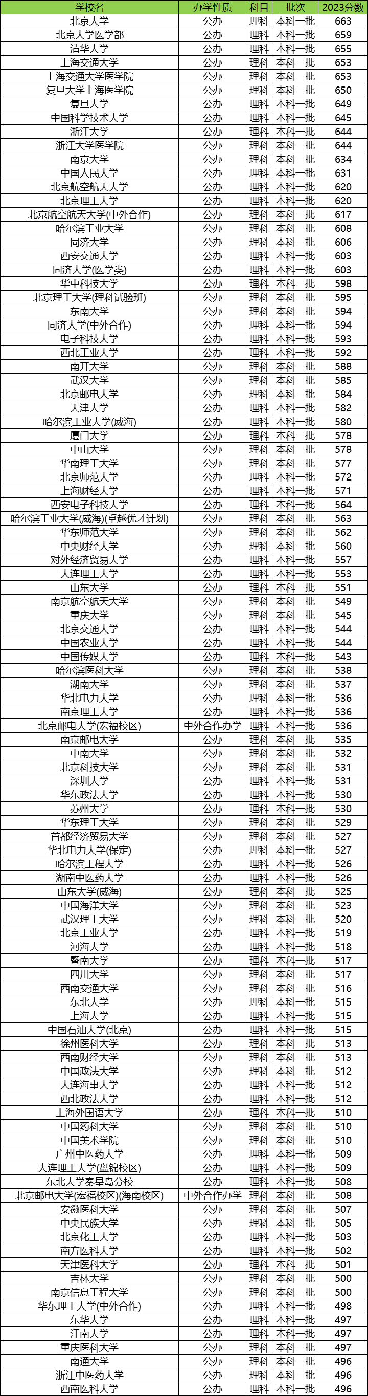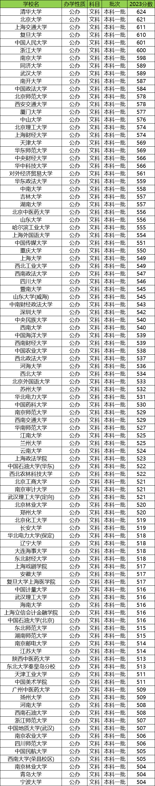 一、全国大学分数线