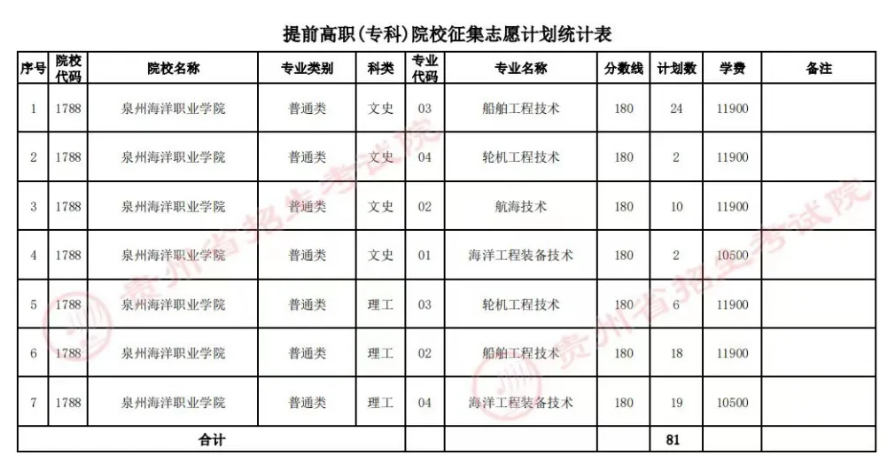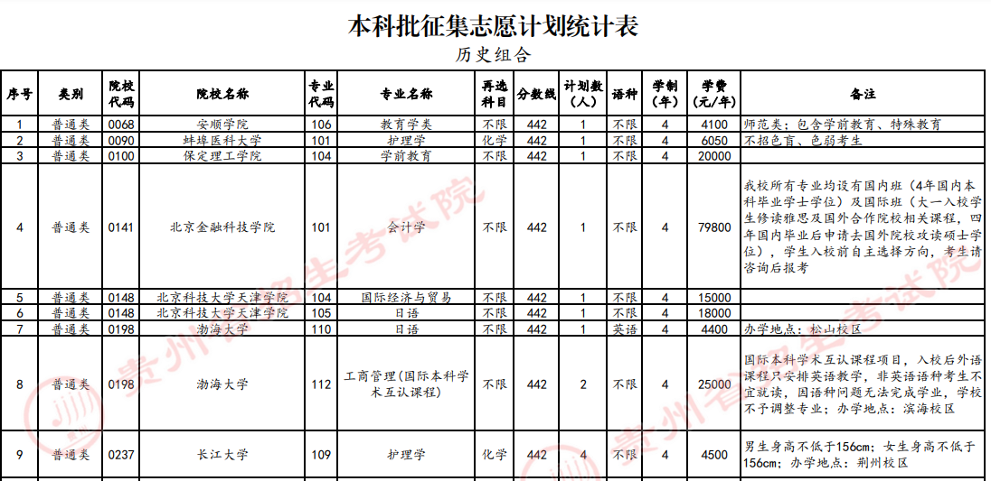 1、贵州本科提前批征集志愿计划表(24年已公布)