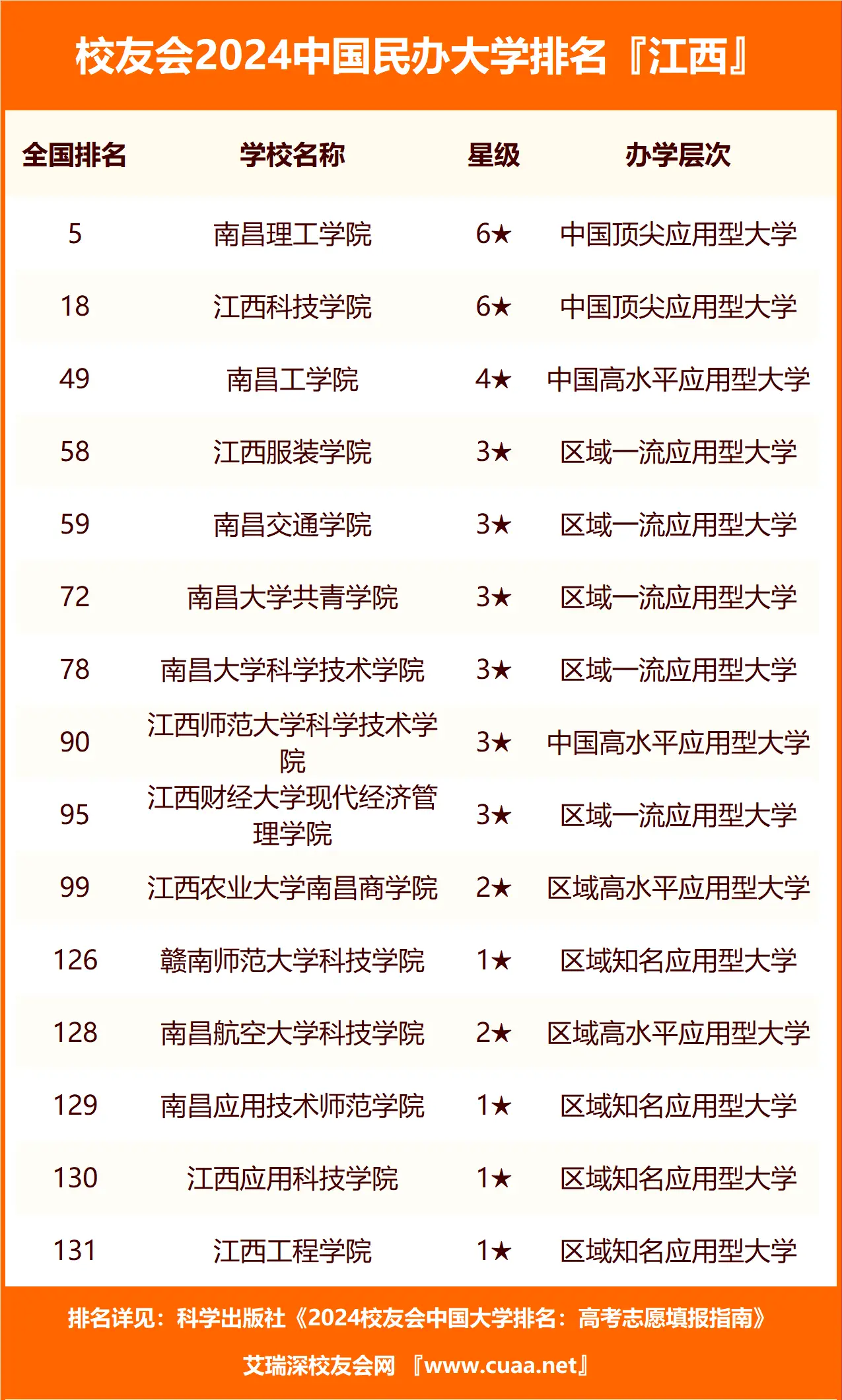一、江西的民办本科大学全部排名名单最新