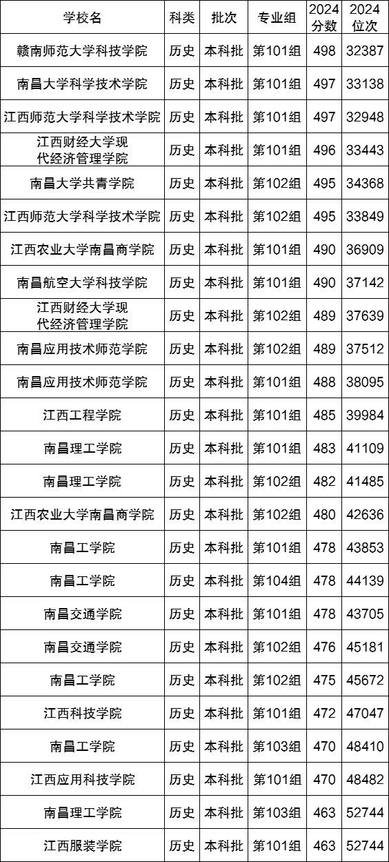 下面是2024年各江西的民办本科大学在江西省历史类的录取分数线(供参考):