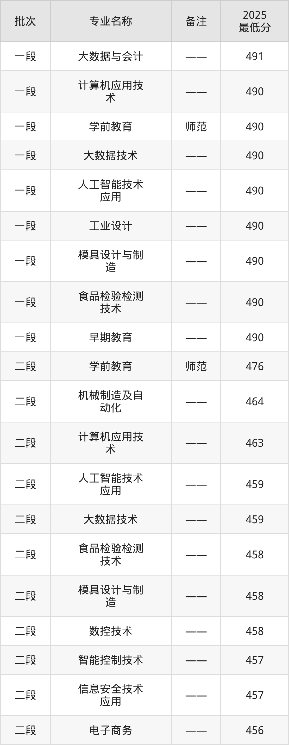一、2025台州科技职业学院专业排名及录取分数线