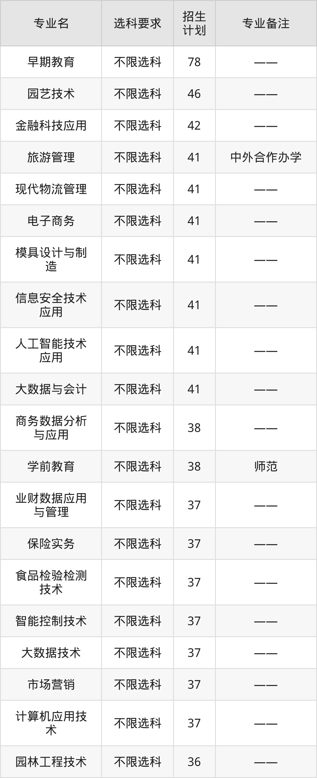 下面是台州科技职业学院2025浙江省招生计划表: