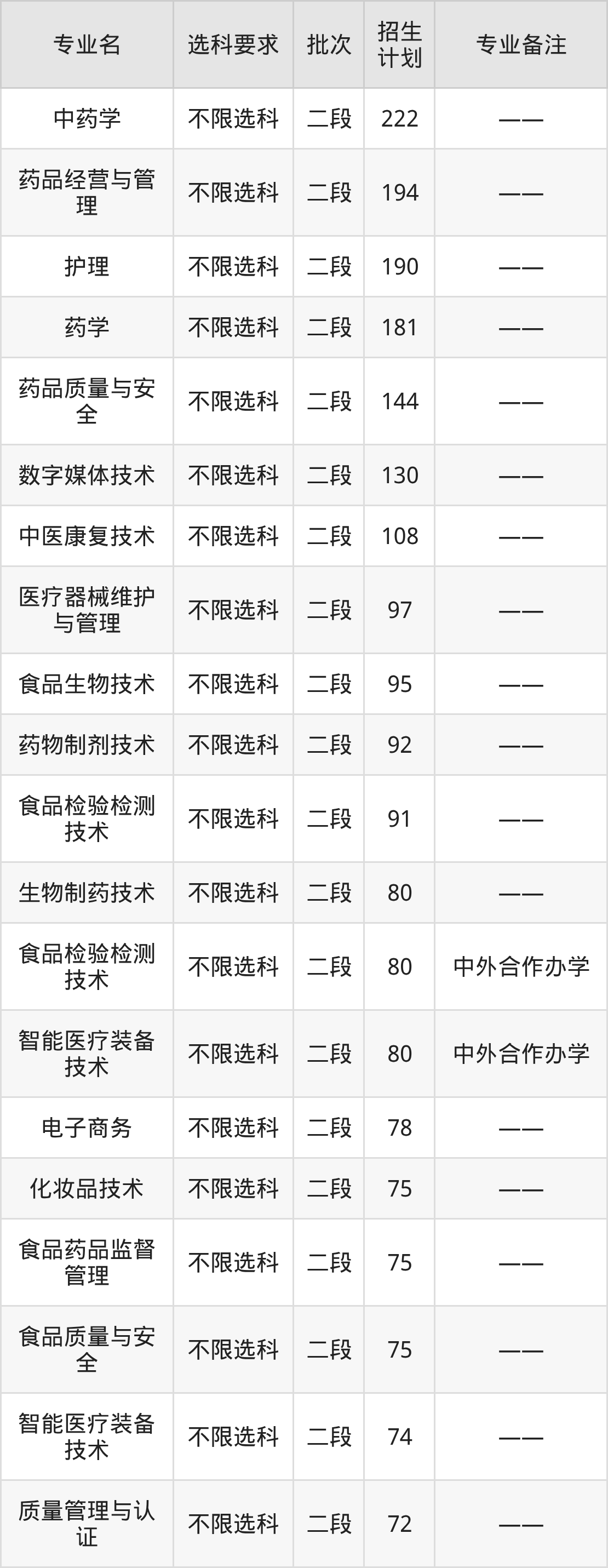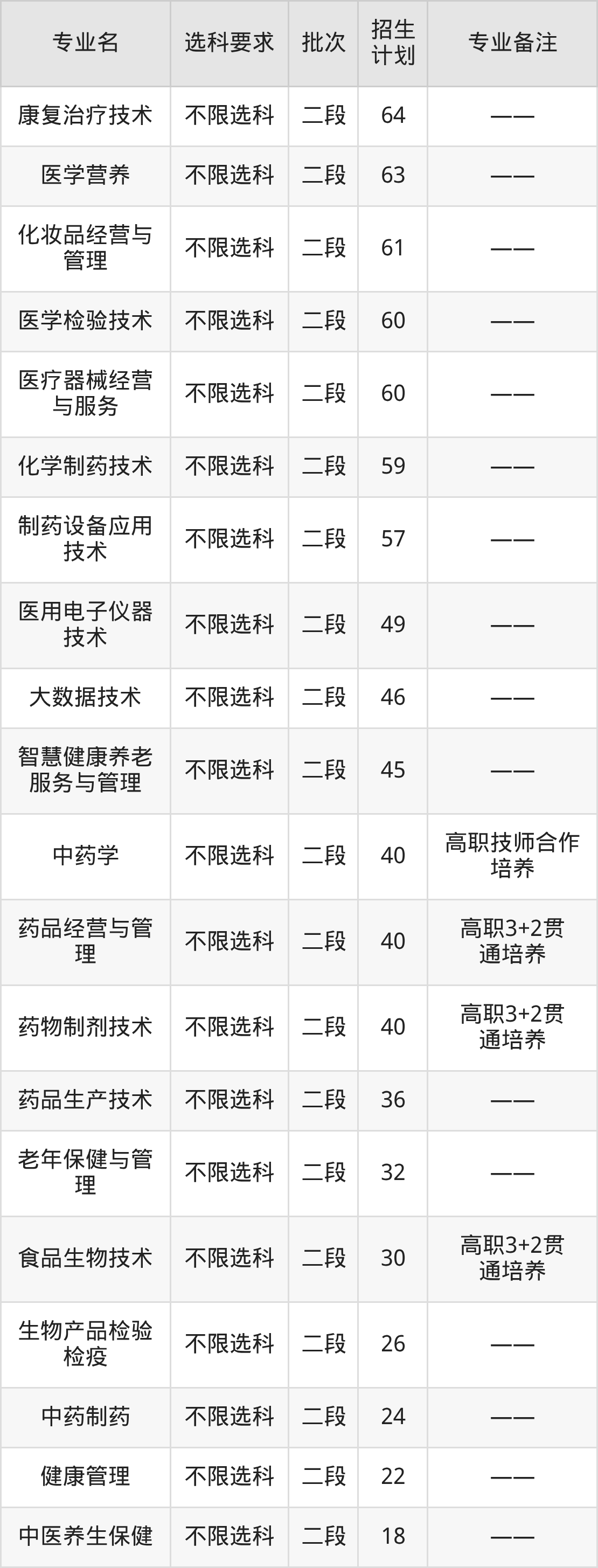 二、山东药品食品职业学院2025招生计划表