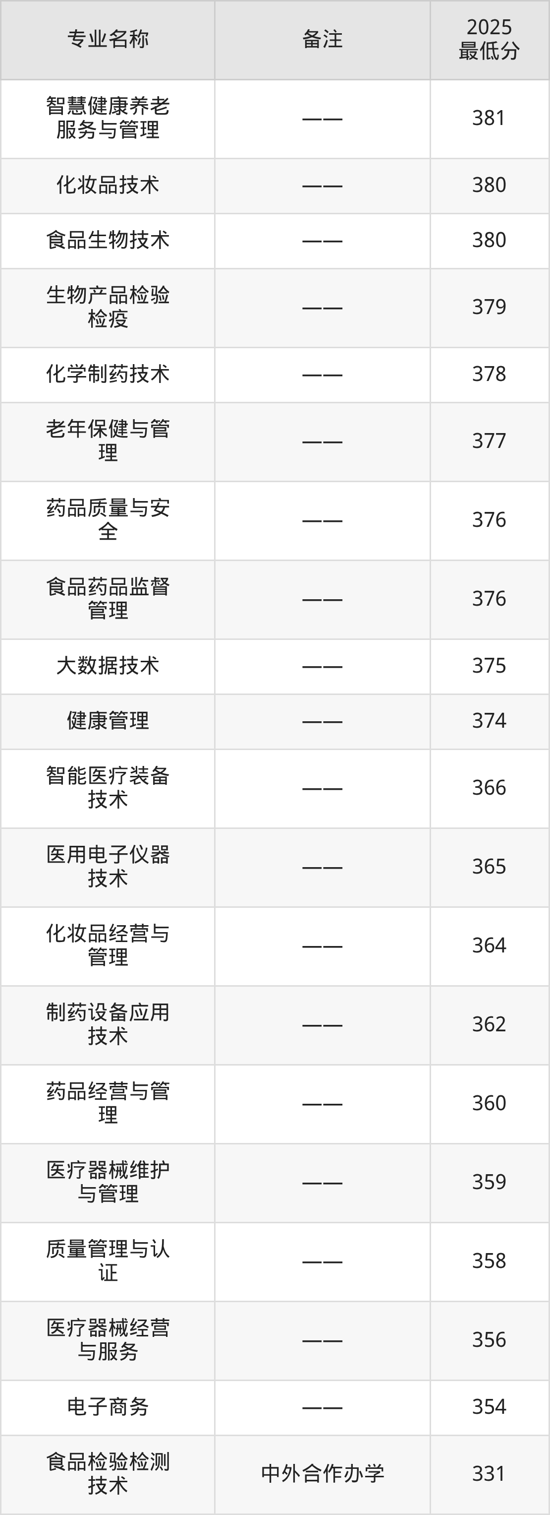 24、食品药品监督管理:专业最低376分