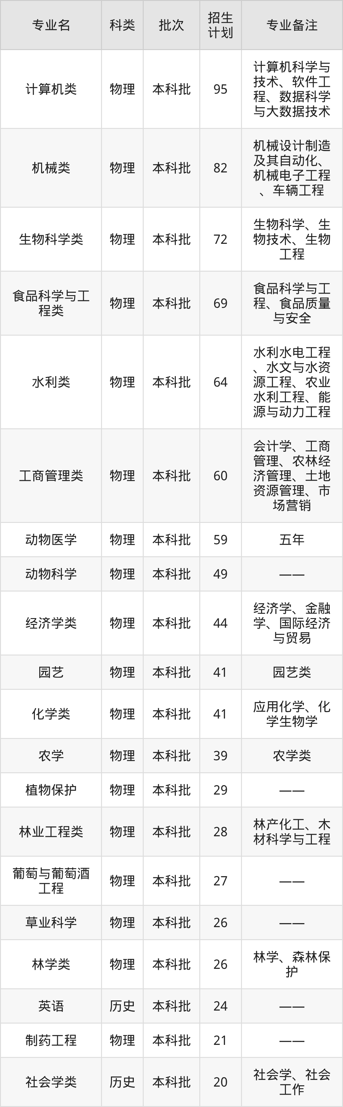 二、西北农林科技大学2025招生计划表