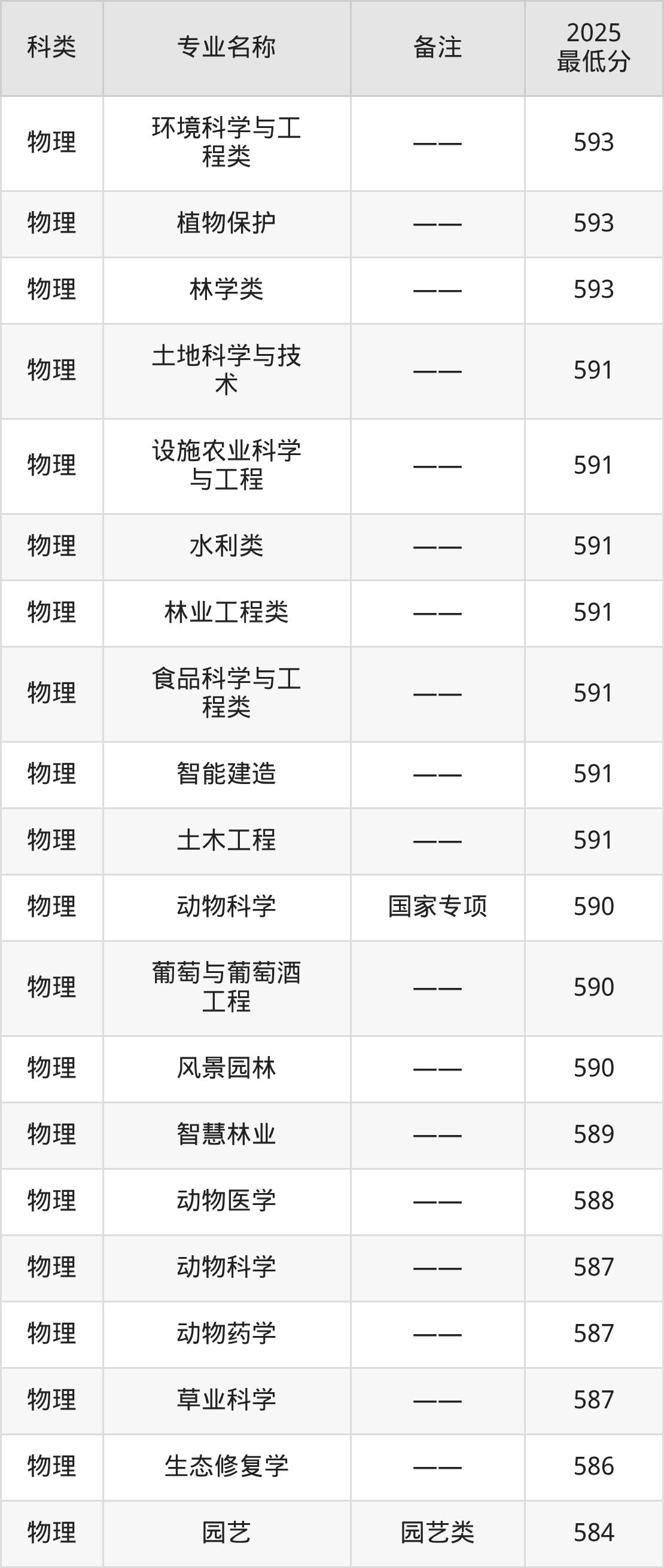 20、草业科学:专业最低587分