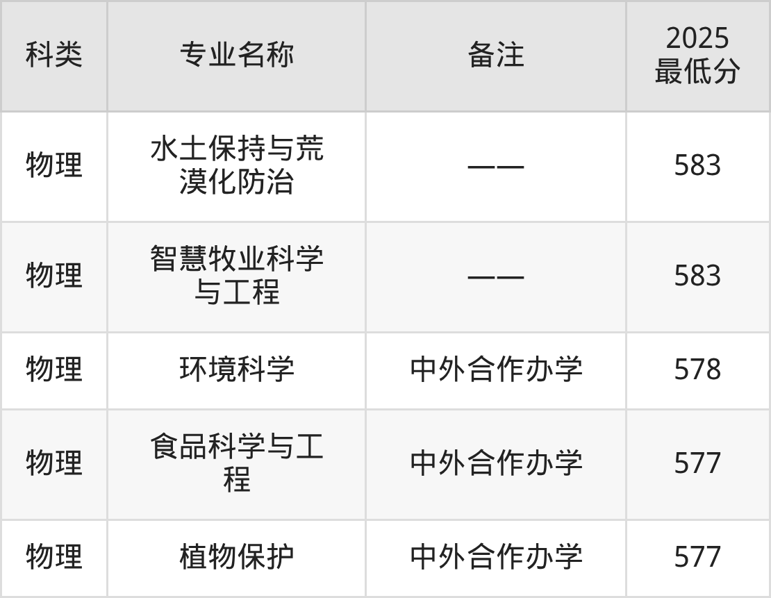 下面是根据2025西北农林科技大学各专业最低录取分数线排名(物理类):