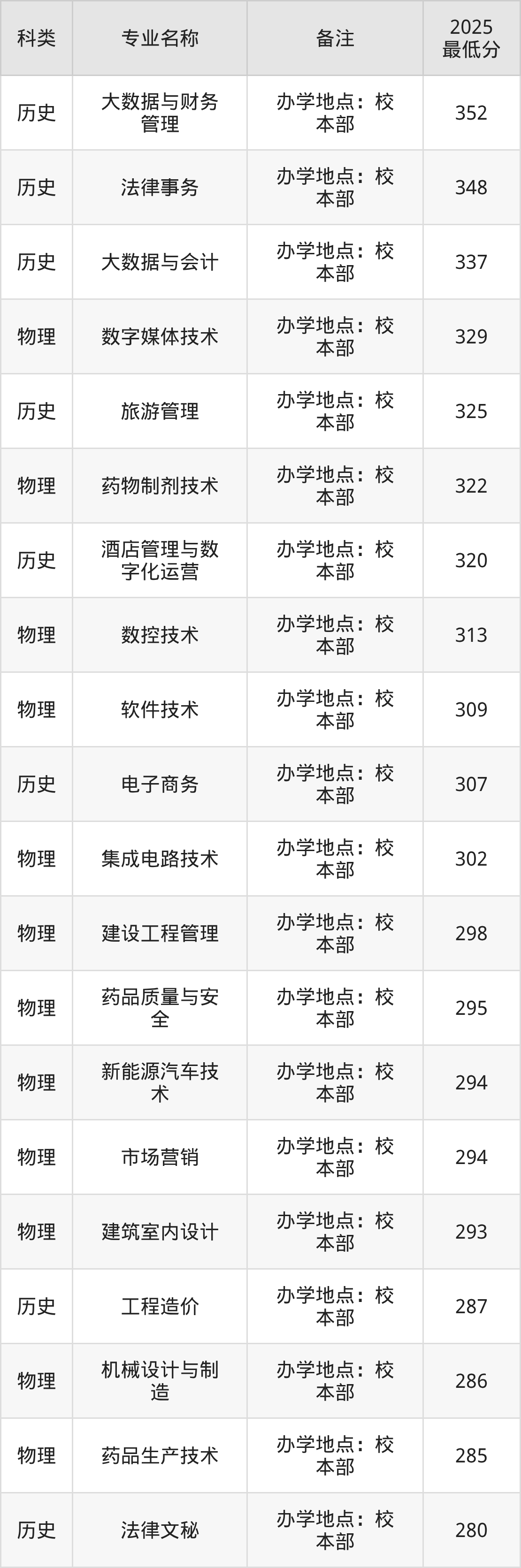 2、药物制剂技术(办学地点:校本部):专业最低322分