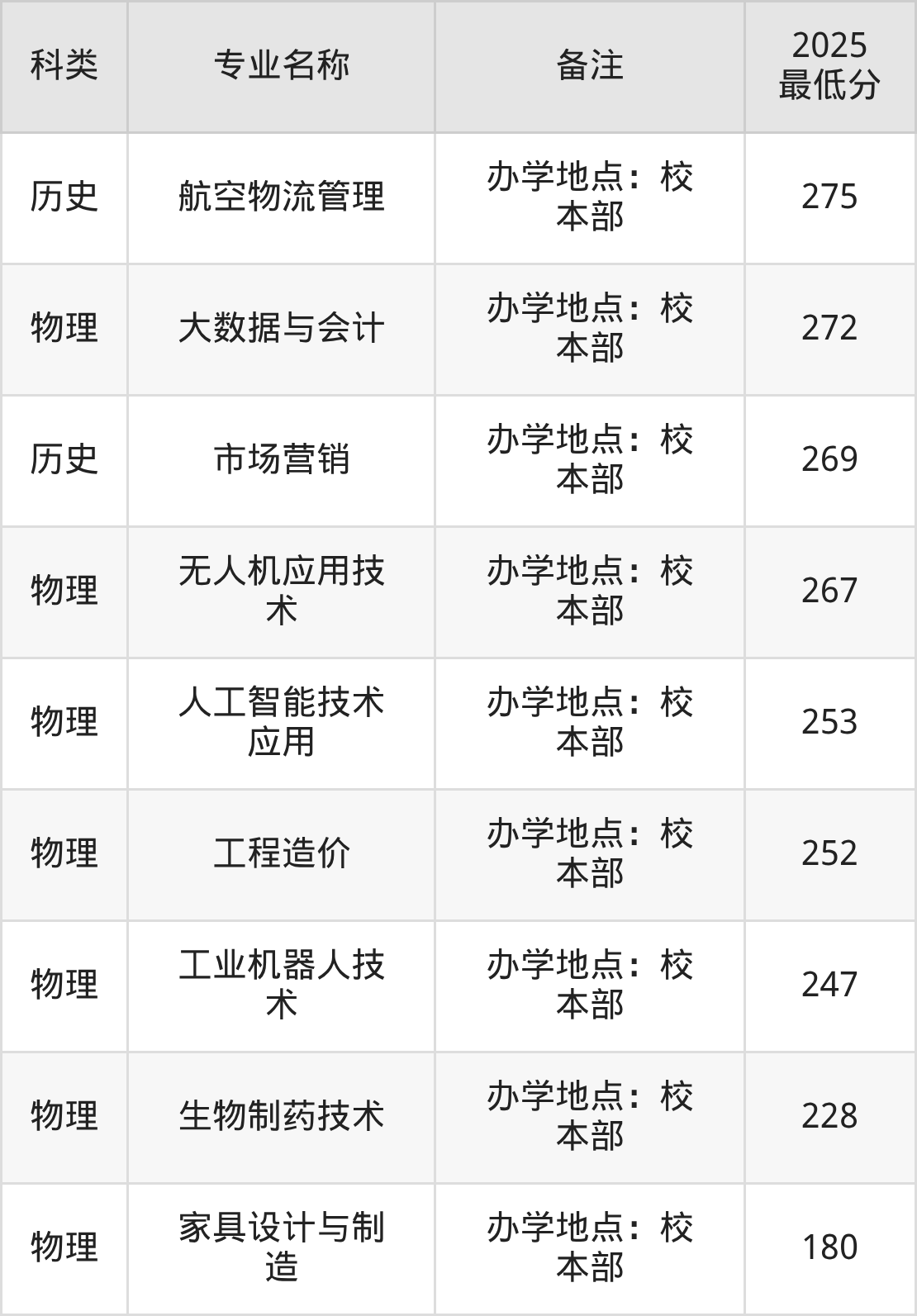 13、无人机应用技术(办学地点:校本部):专业最低267分