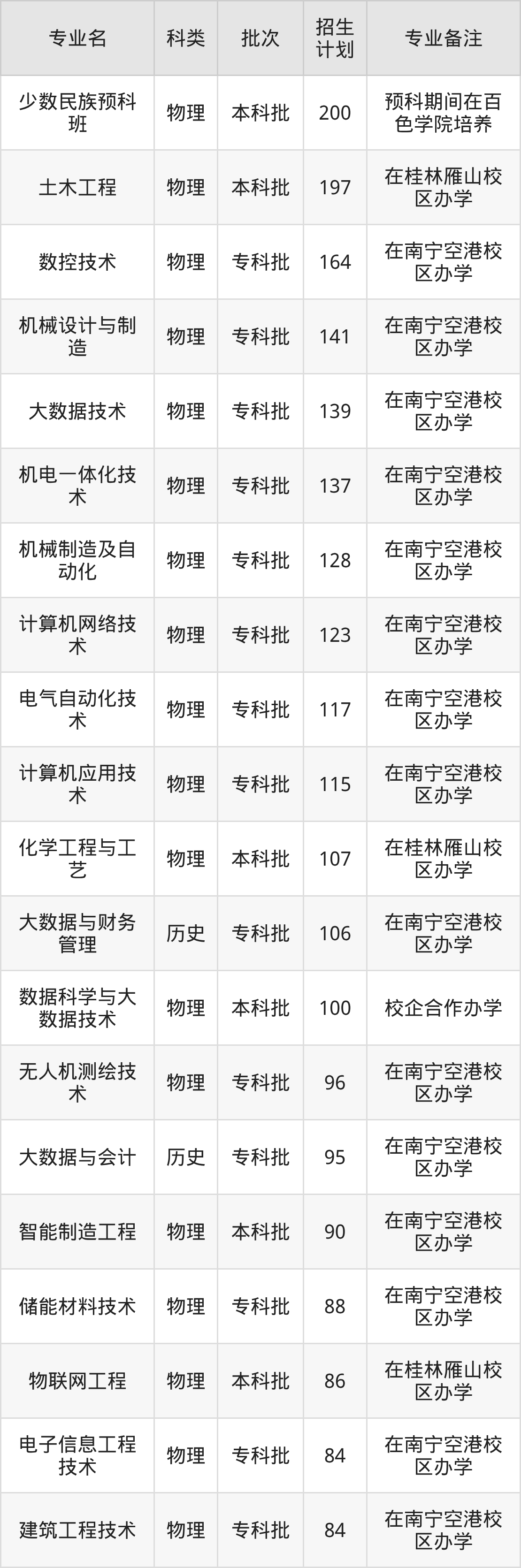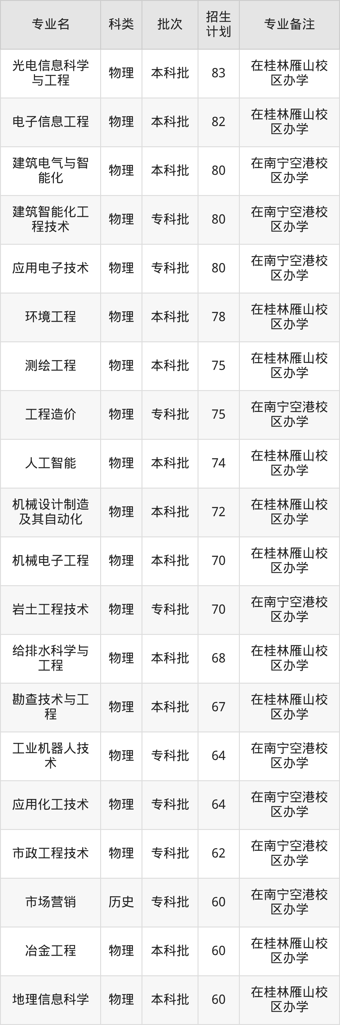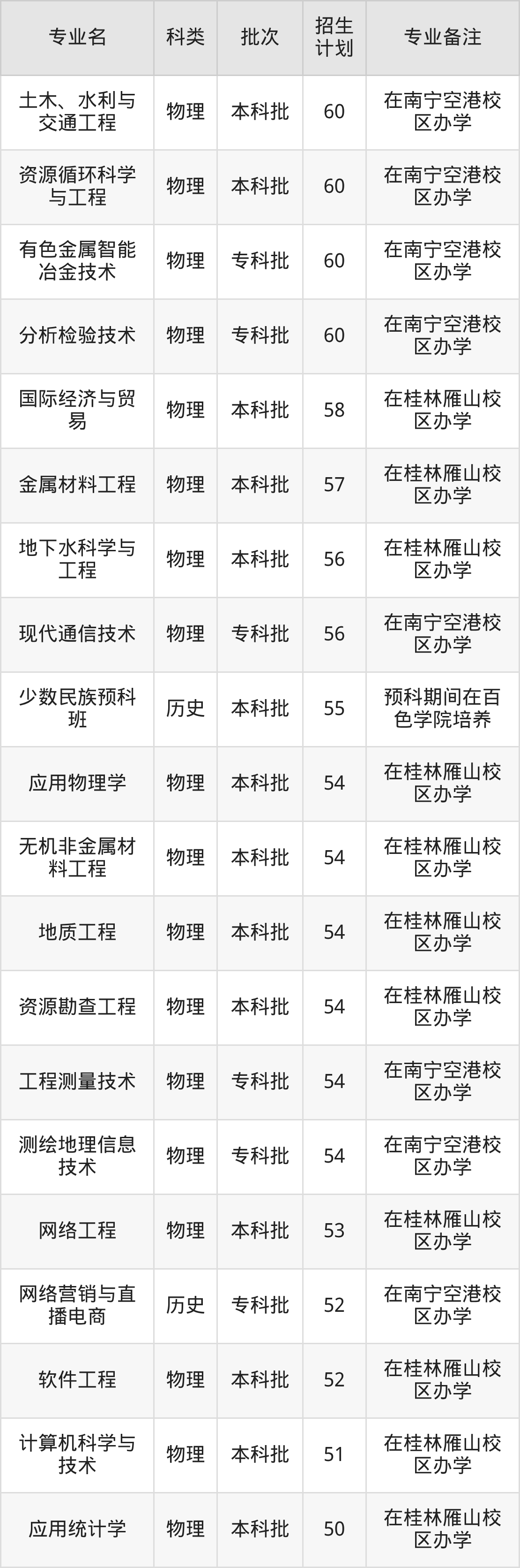 下面是桂林理工大学2025壮族自治区招生计划表: