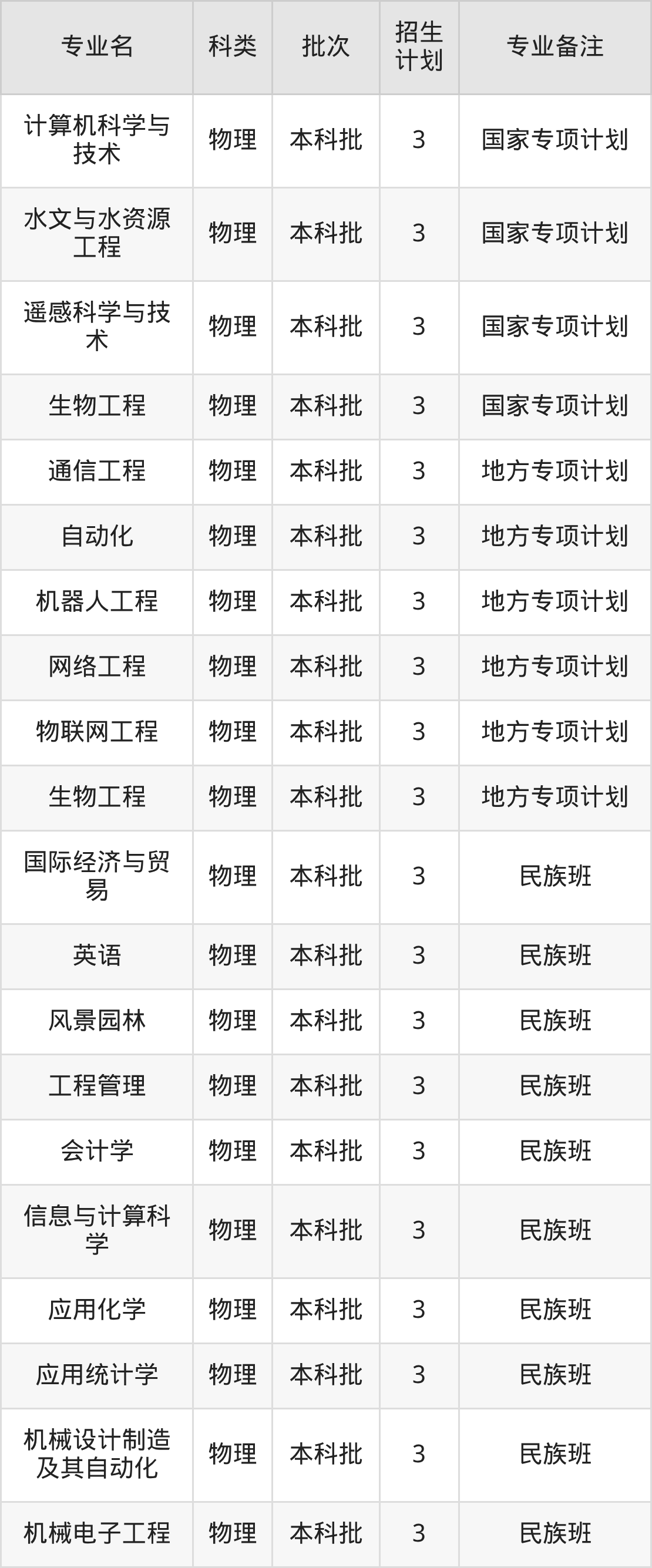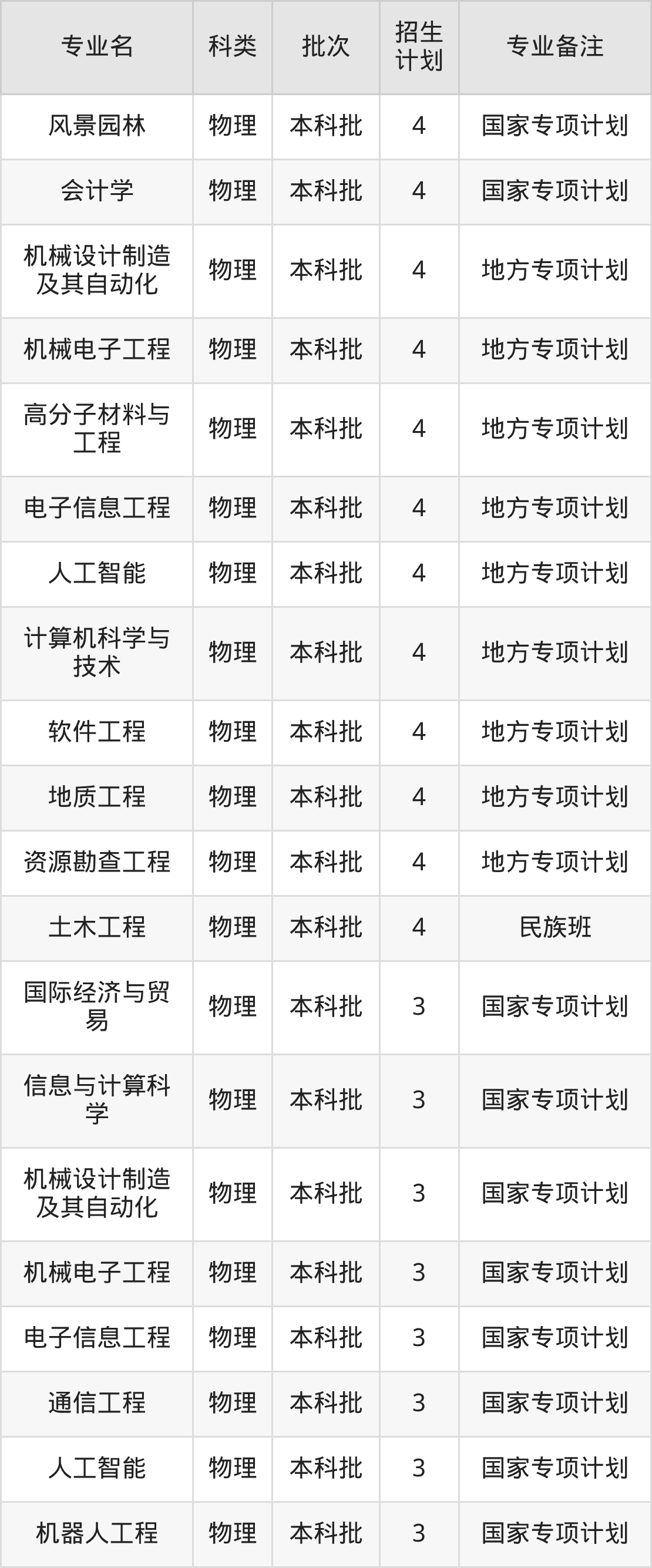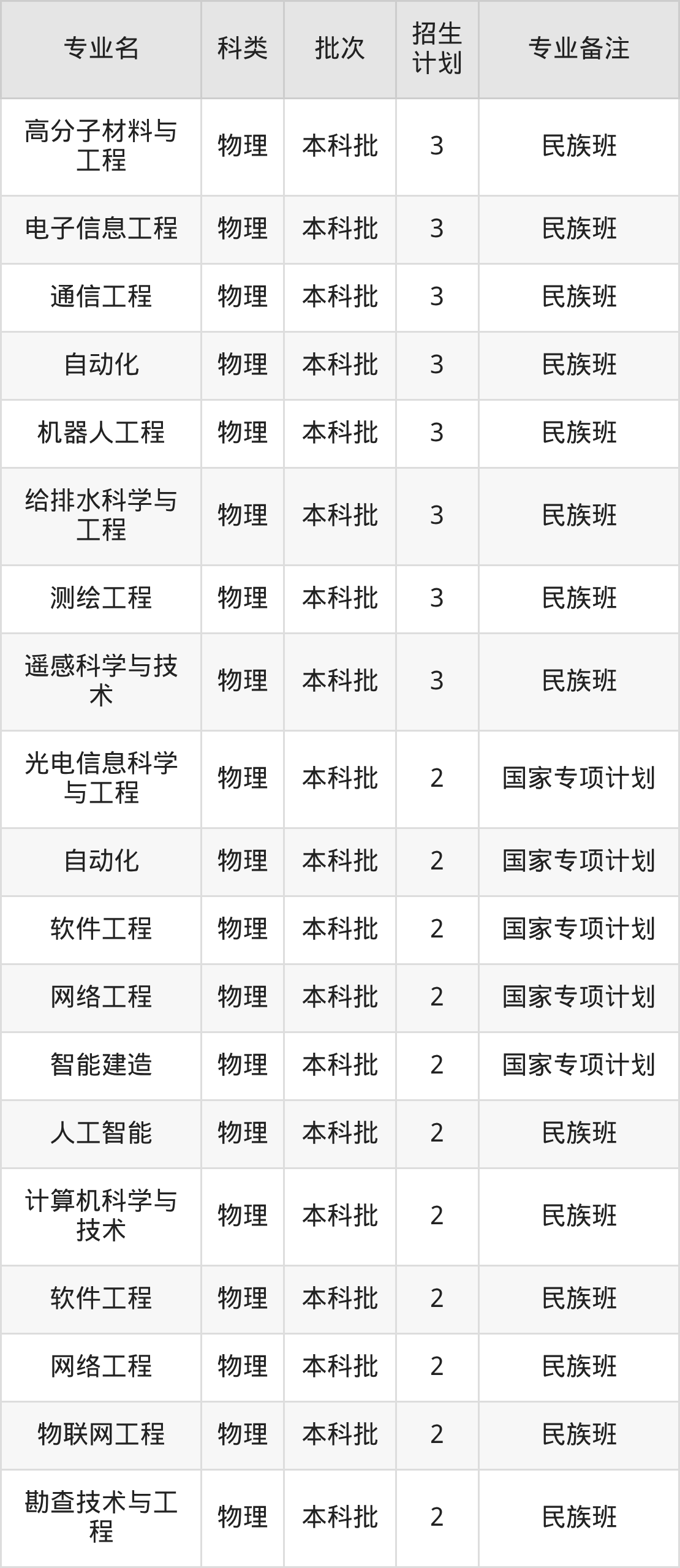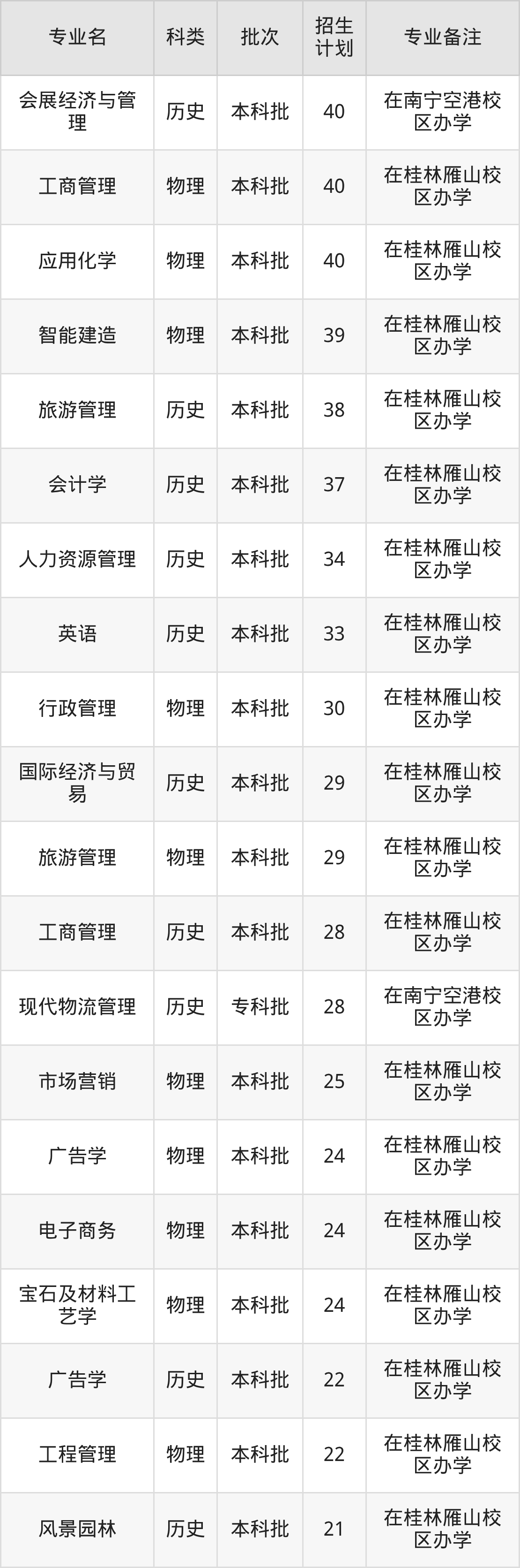 下面是桂林理工大学2025壮族自治区招生计划表: