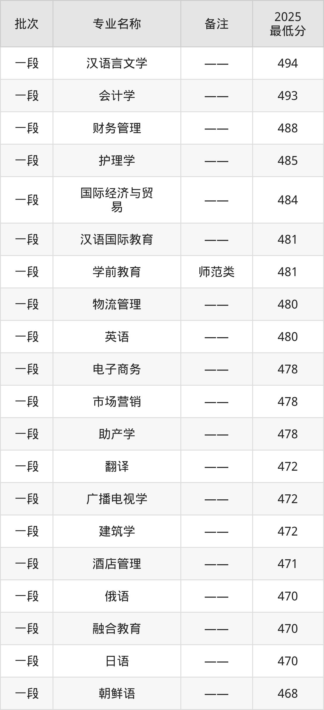 12、朝鲜语:专业最低468分