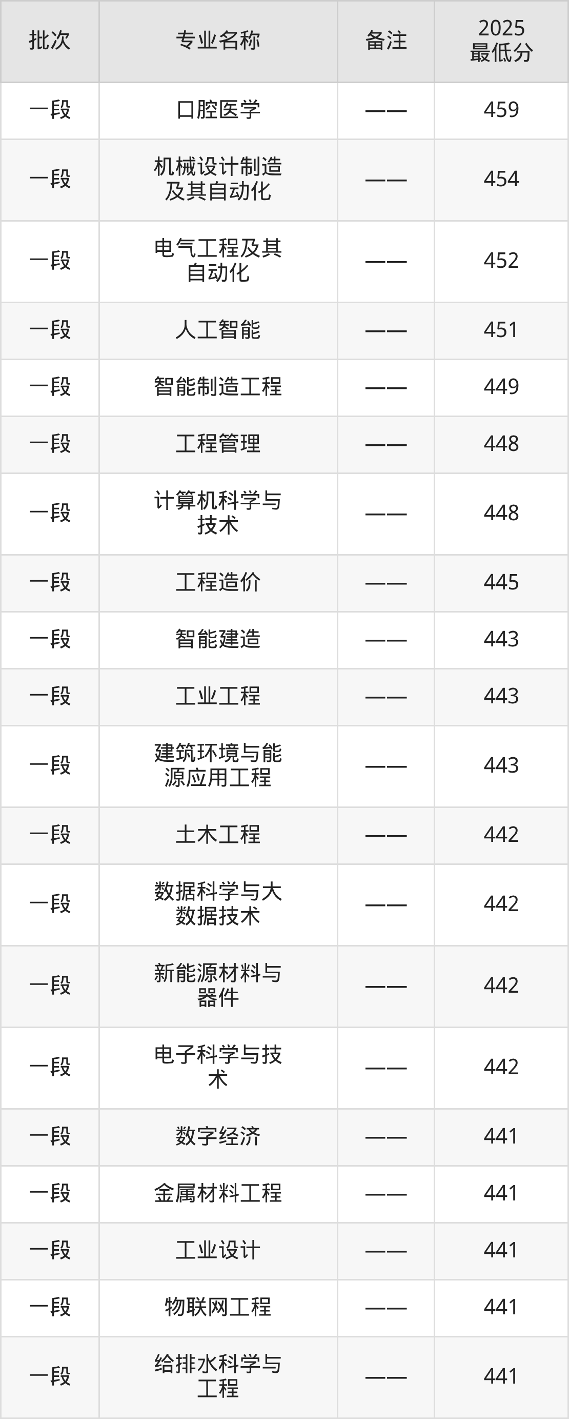 17、智能制造工程:专业最低449分