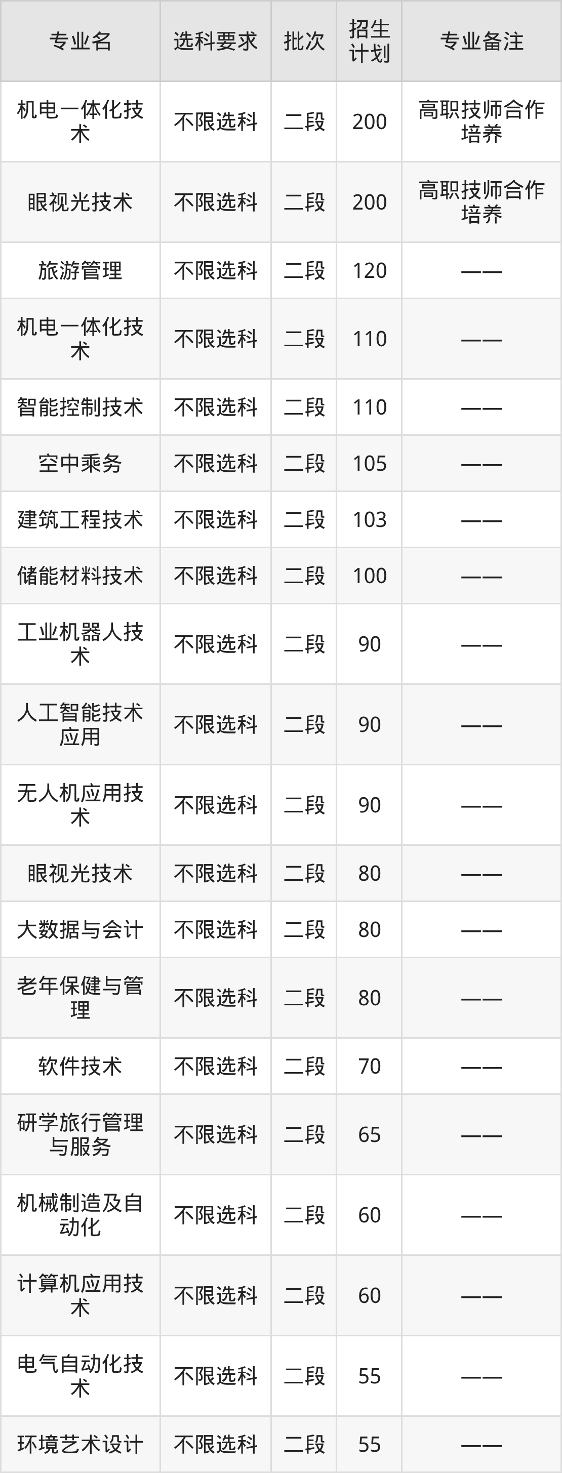 以山东省为例,2025济宁职业技术学院在所在省份招生人数共计3473人,其中人数最多的专业为机电一体化技术(高职技师合作培养),共计200人,该专业选科要求为不限选科。一般来说,招生人数越多,专业低分录取的概率就越大,具体可参考当地最终录取数据。