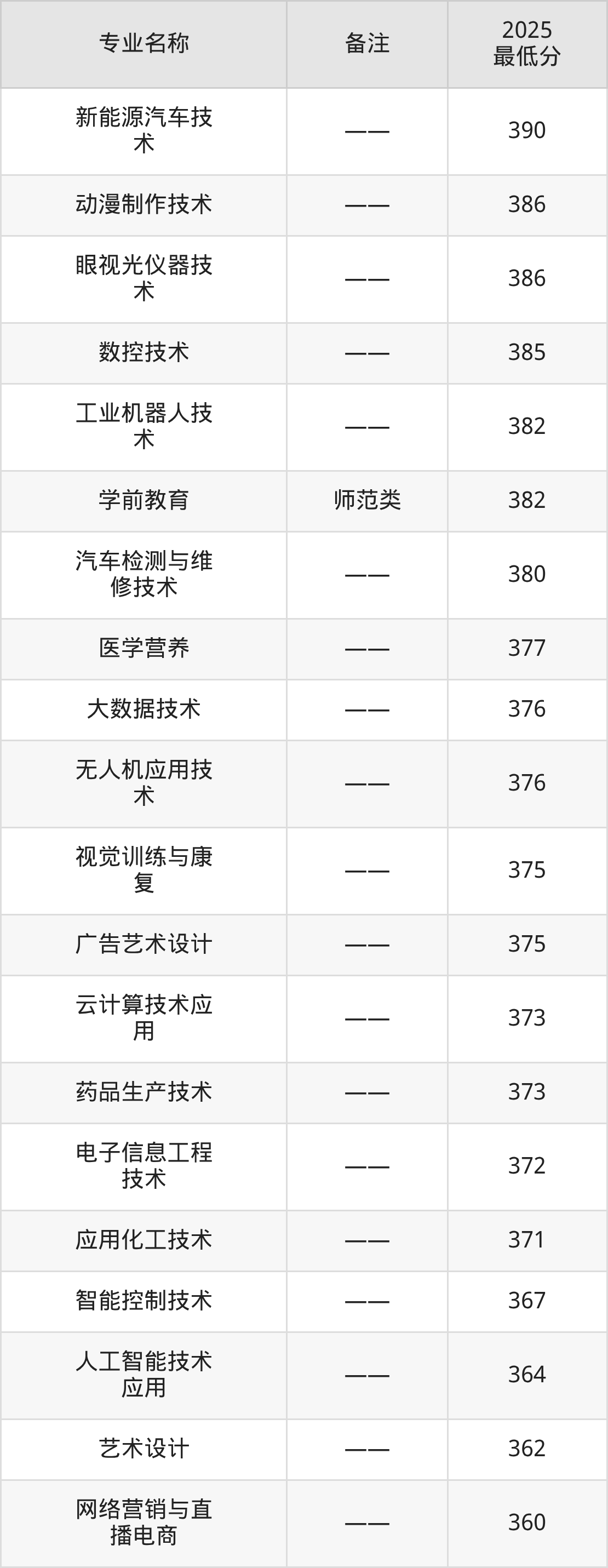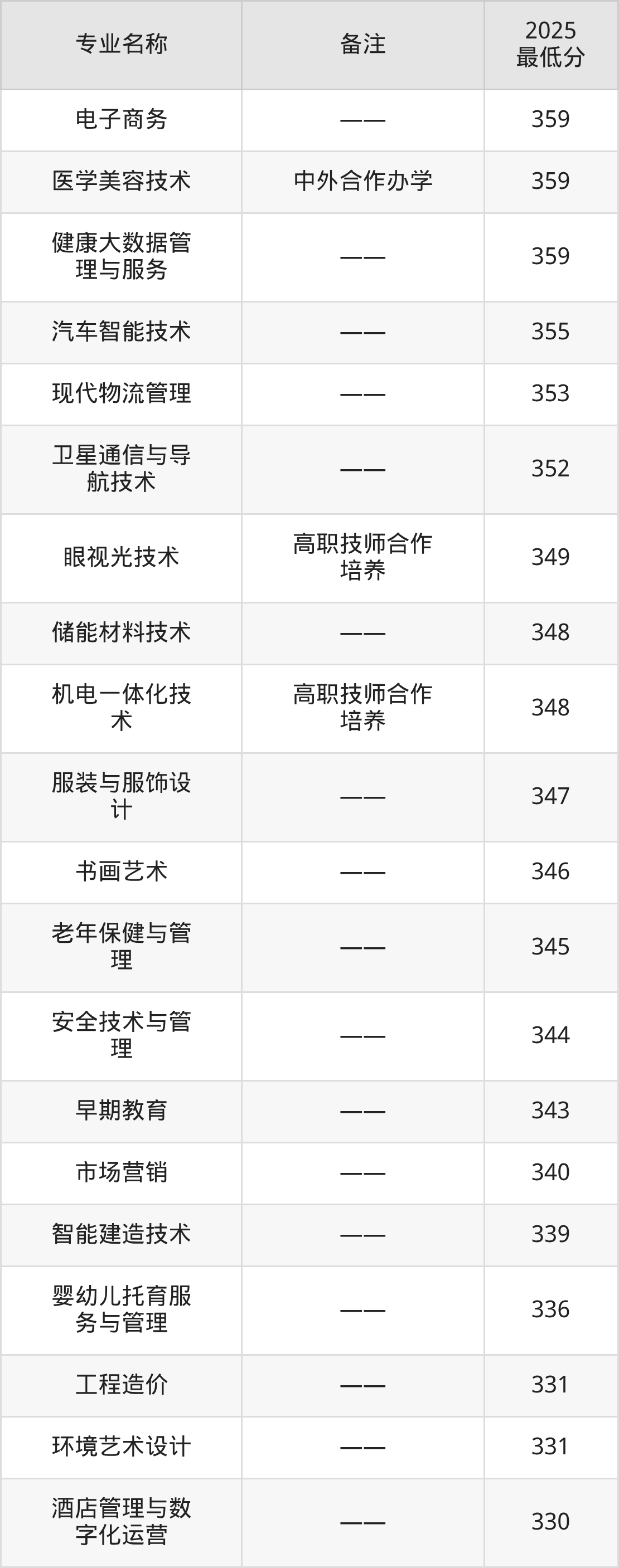 25、电子信息工程技术:专业最低372分