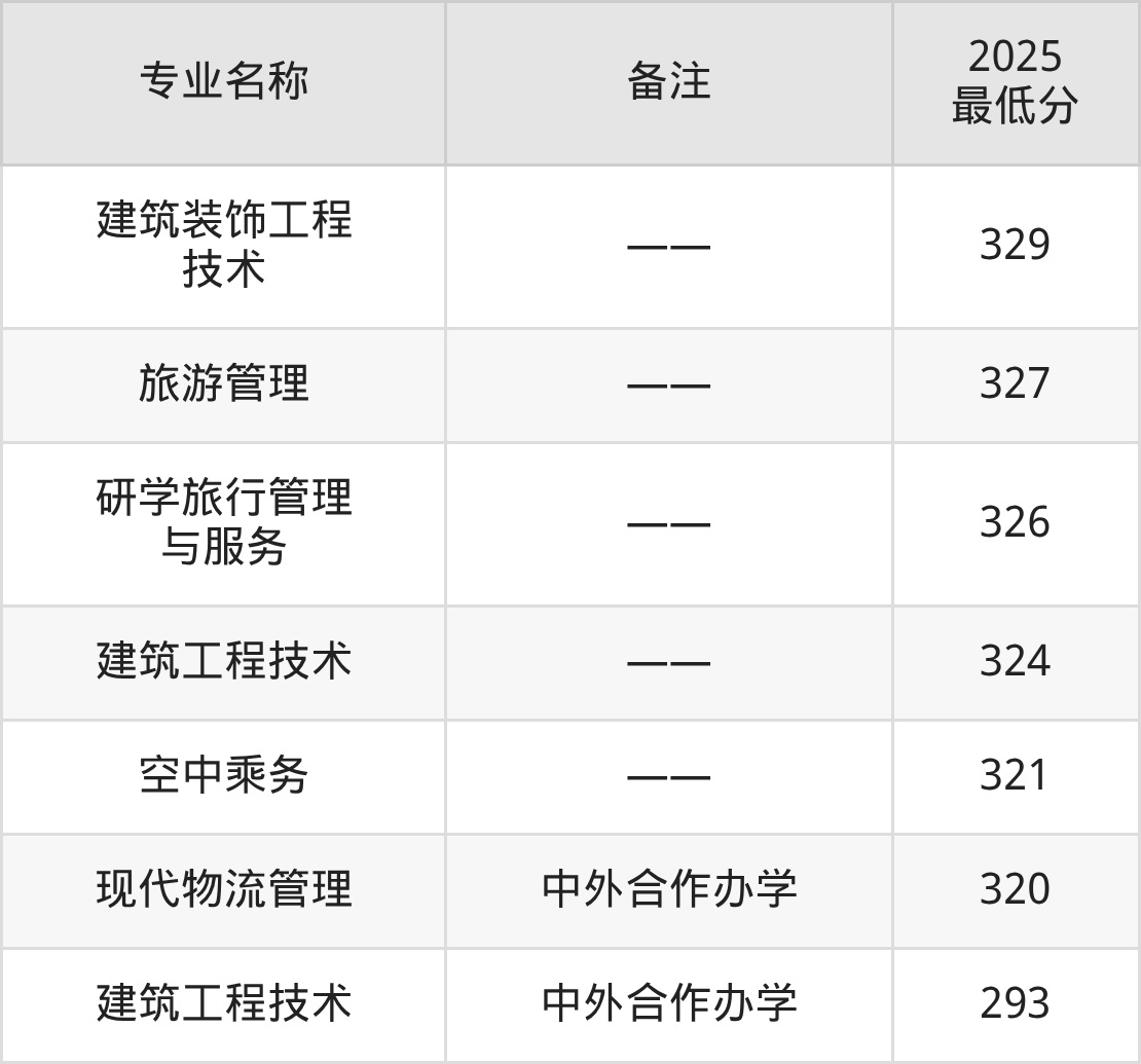 51、空中乘务:专业最低321分