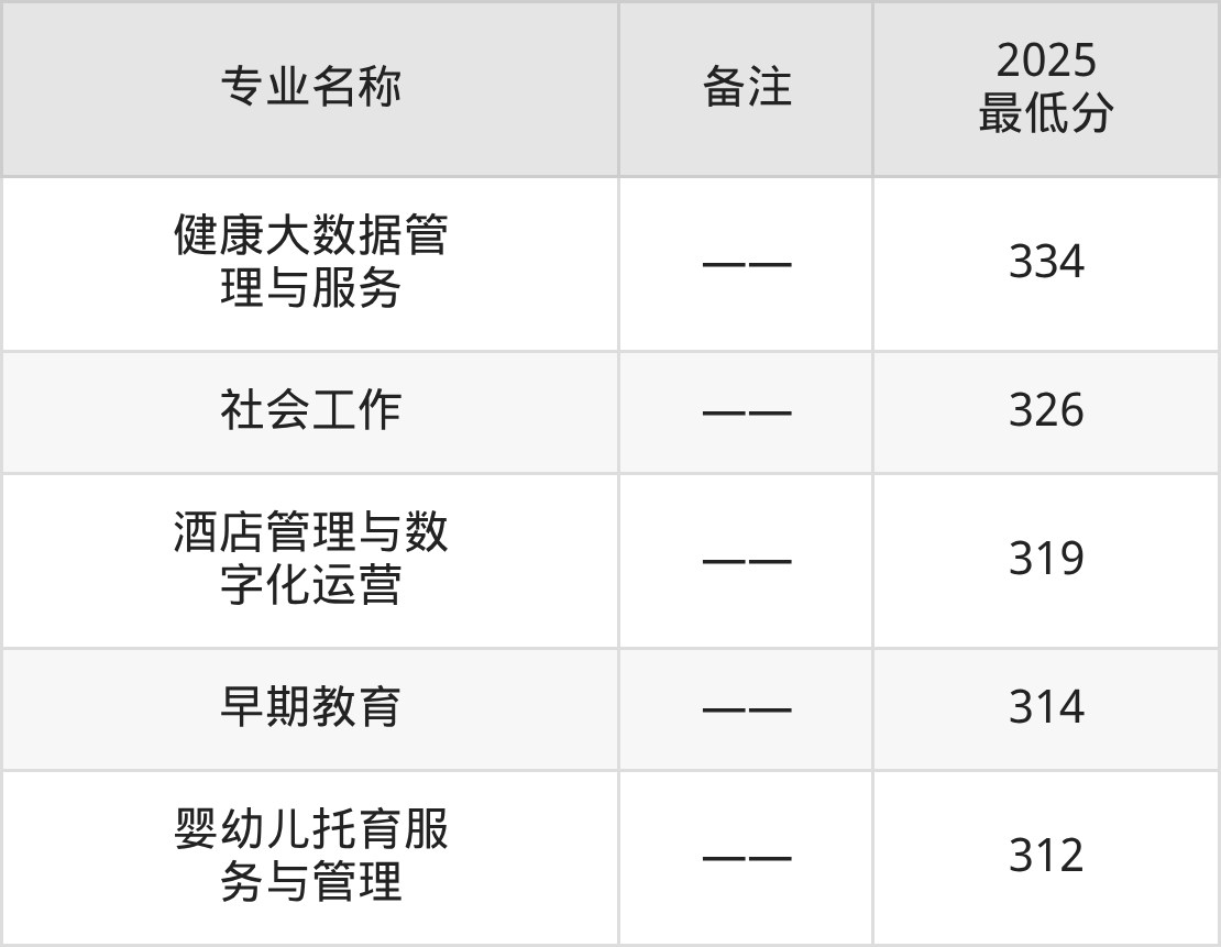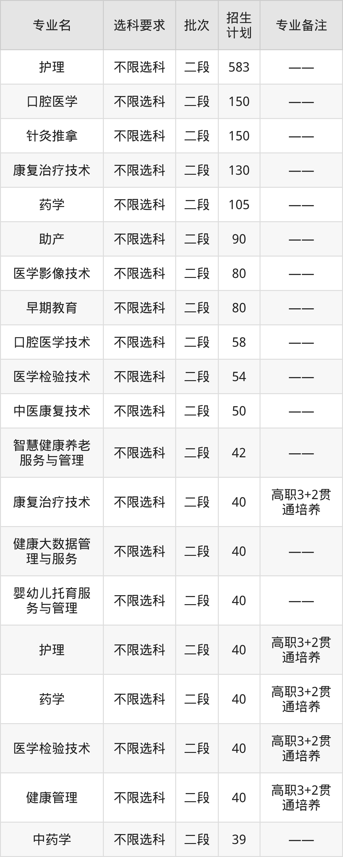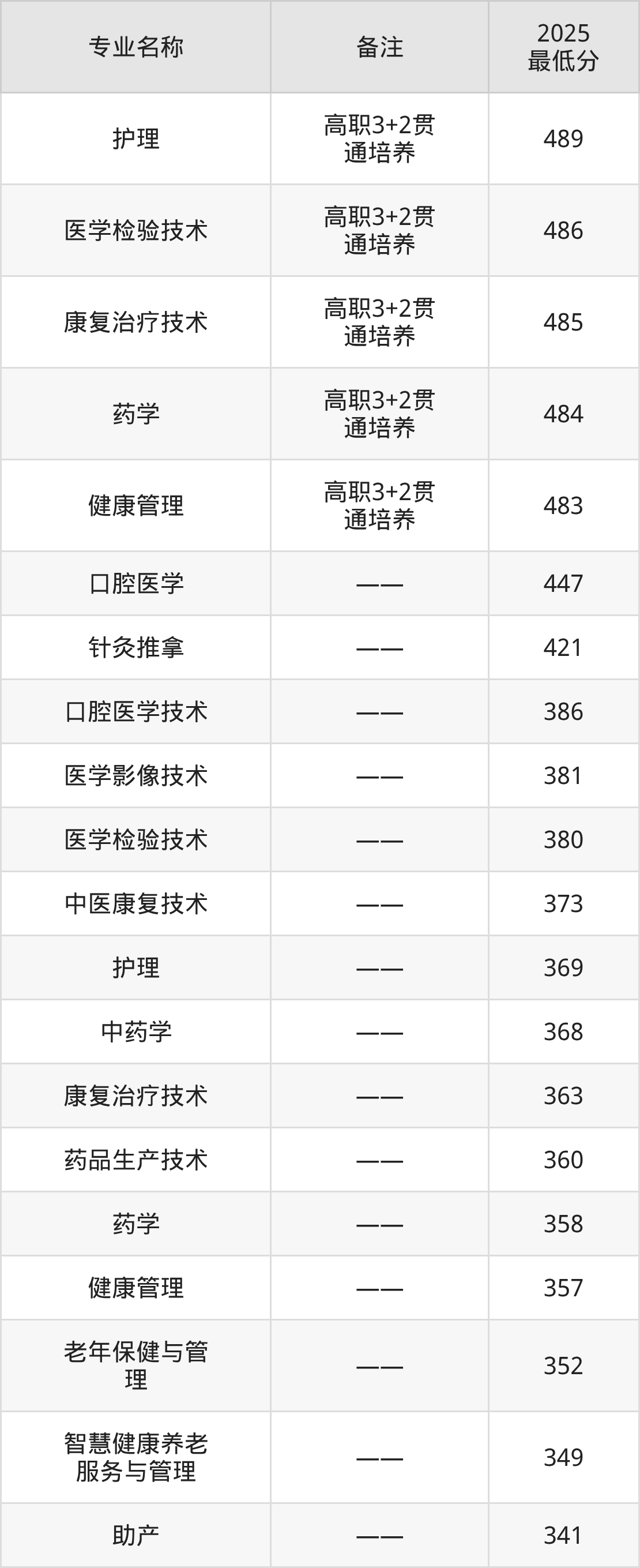 5、健康管理(高职3+2贯通培养):专业最低483分