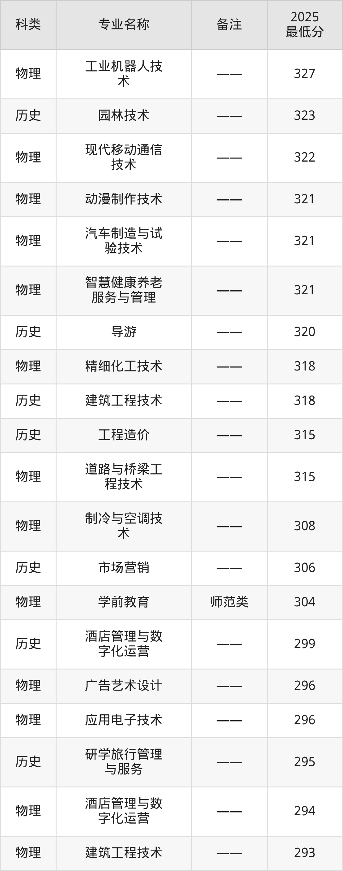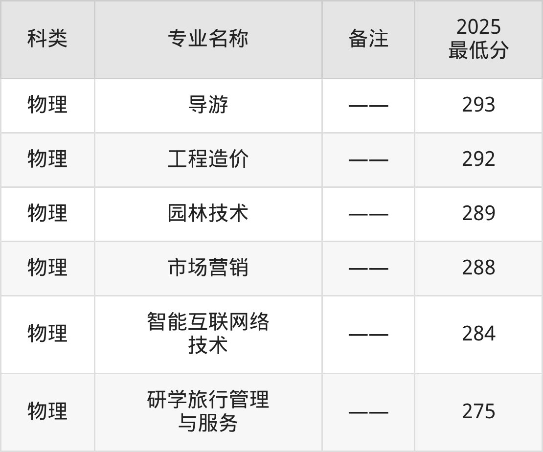 下面是根据2025阜新高等专科学校各专业最低录取分数线排名(物理类):