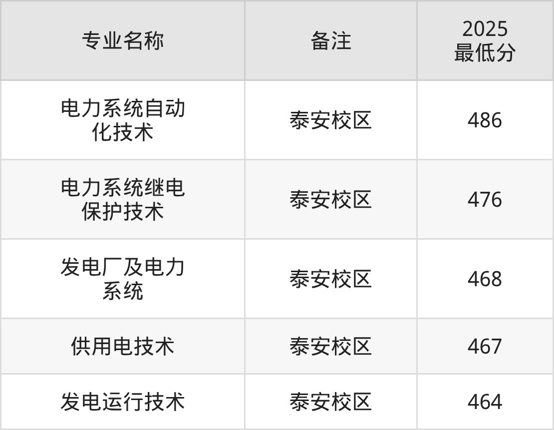 1、电力系统自动化技术(泰安校区):专业最低486分