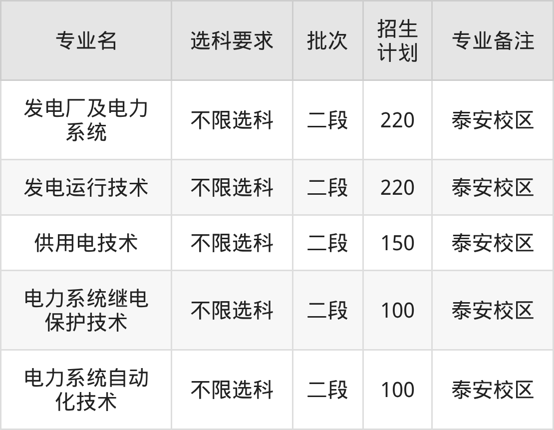 二、山东电力高等专科学校2025招生计划表