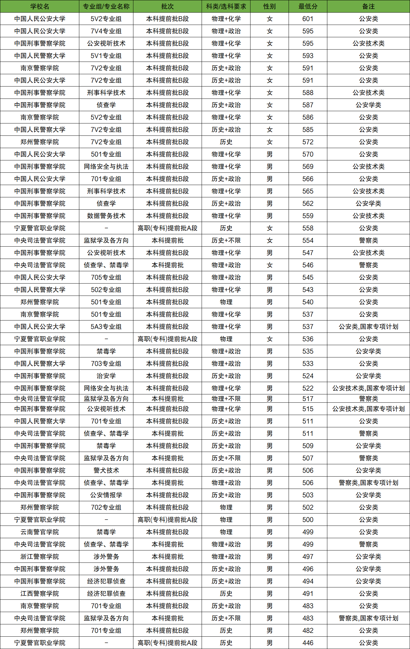南京警察学院:历史类男生483分、女生591分,物理类男生537分、女生586分。